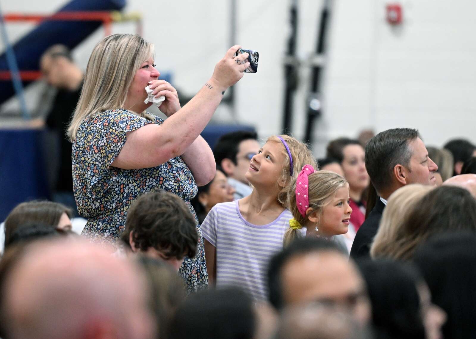 Rachel Krueger wipes away tears while taking pictures of her son Tayten Wilder receiving his diploma during the final official Elgin Academy graduation Saturday.
