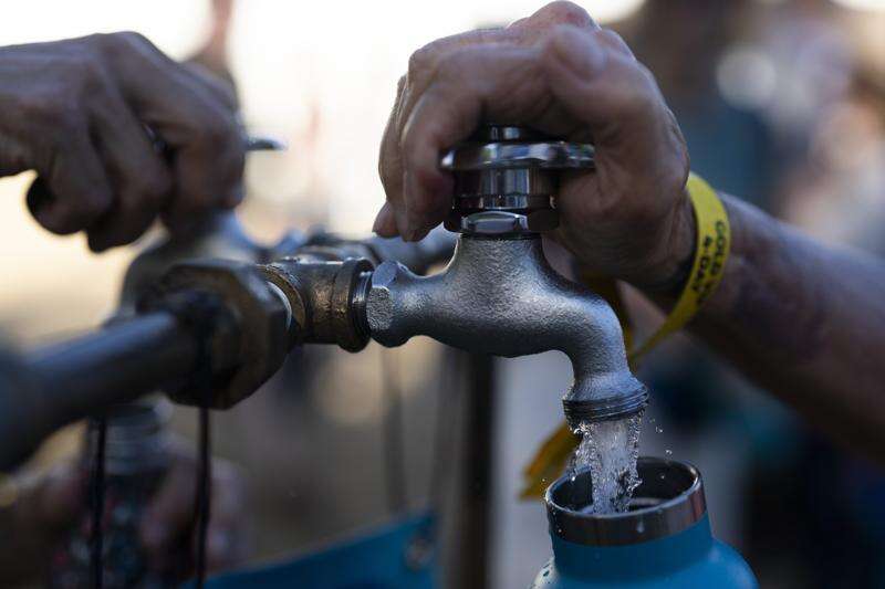 People fill up their water bottles while attending the Waterfront Blues Festival on Friday, July 5, 2024, in Portland, Ore. A slow-moving and potentially record-setting heat wave is spreading across the Western U.S., sending many residents in search of a cool haven from the dangerously high temperatures. (AP Photo/Jenny Kane)