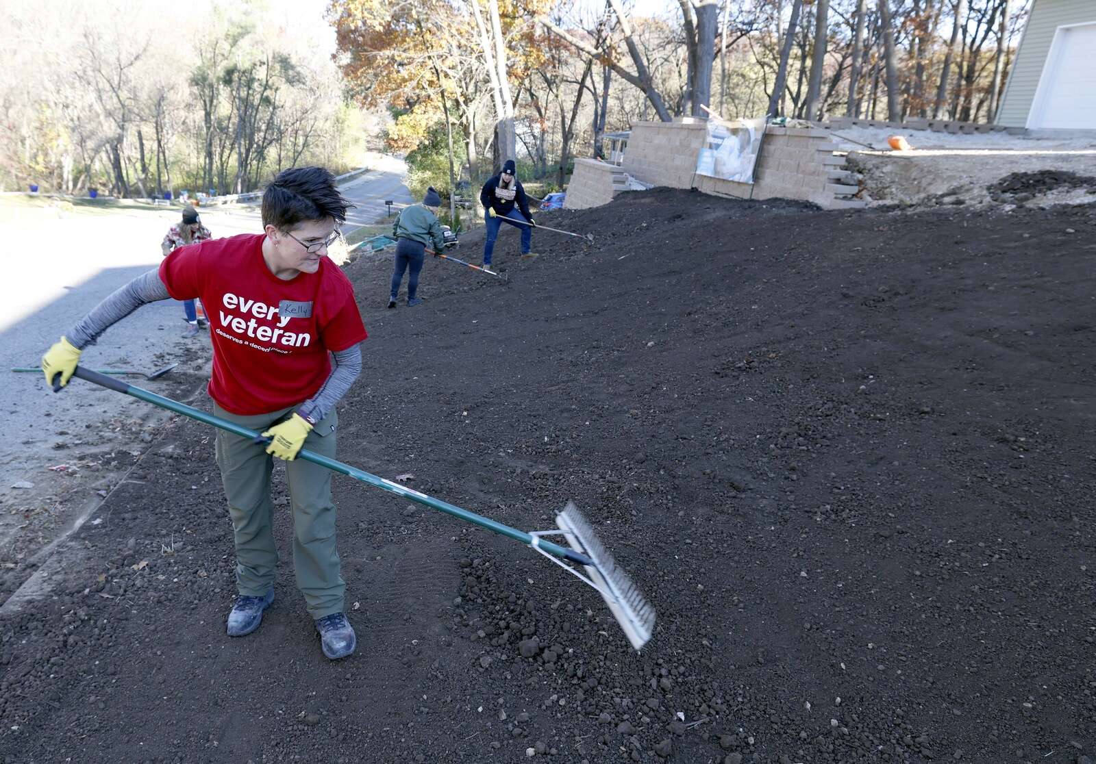 The group worked tirelessly Friday, smoothing and grading the landscape on a steep slope in front of one of five new Habitat for Humanity homes in the 200 block of Skyline Drive, in Carpentersville.