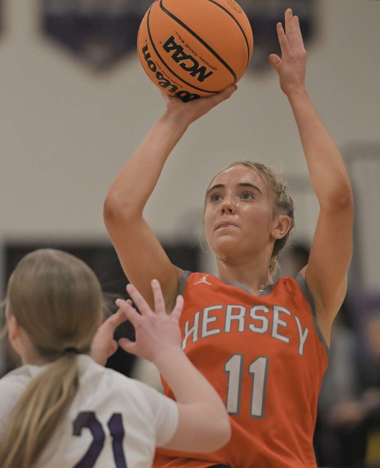 Hersey's Etta Fischer scored on a putback with 1:46 left and the freshman added a free throw 20 seconds later which sent Hersey into the intermission leading 27-19.