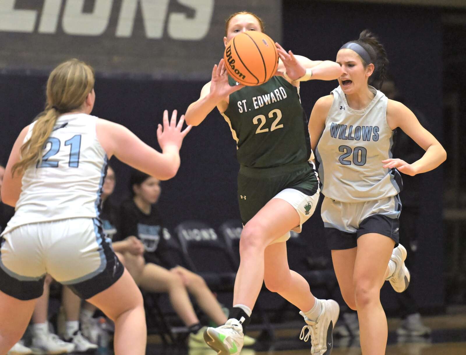 Lynch scored a game-high 23 points, while receiving huge support from teammates Jordin Sauls, Layne Dawson, Ginger Younger, Maggie Jarzemsky, Elizabeth Leadley, Amelia Davis, and Madeline Sasis, as St. Edward prevailed, 56-43, at Harvest Christian.