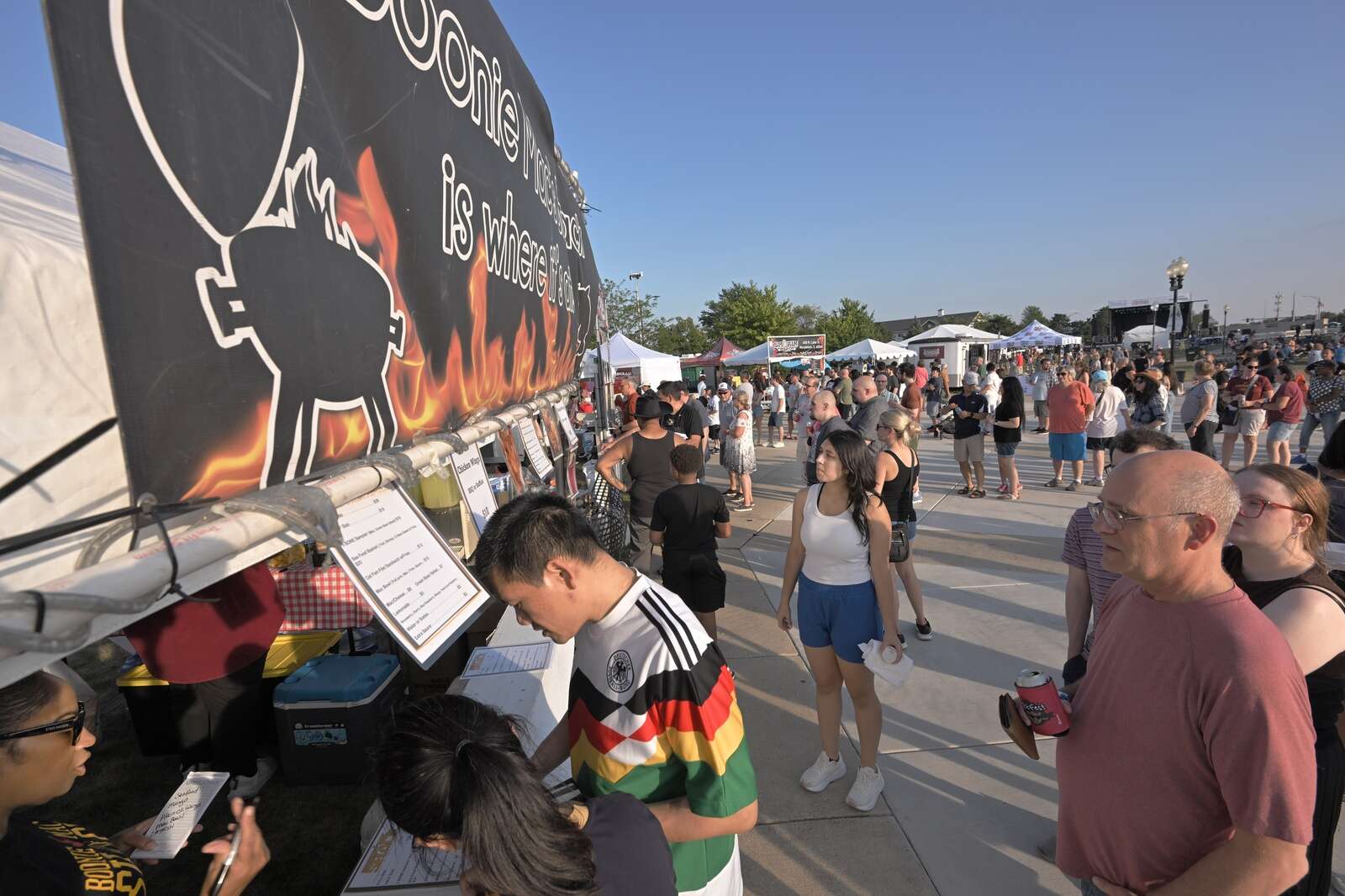 Lines form at all five rib vendors at the Little Bear Ribfest Friday, Aug. 15, in Century Park in Vernon Hills.