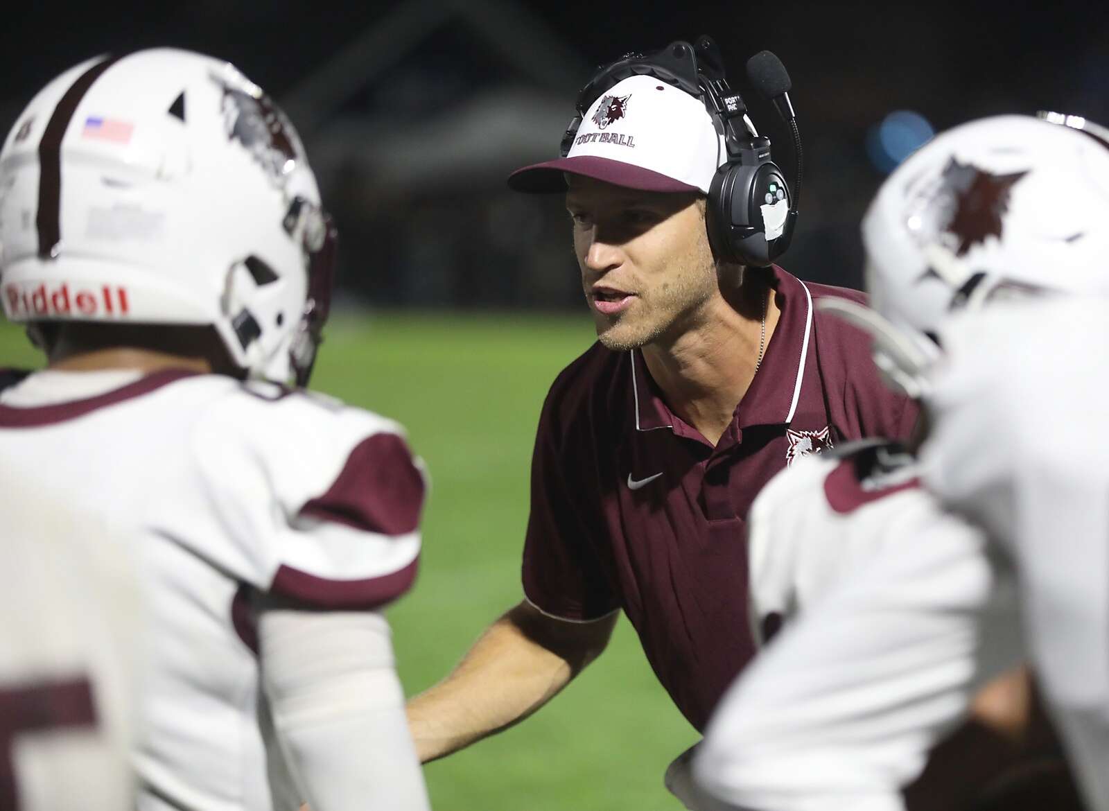 Cary-Crove Head Coach Brad Seaburg stress a point to his team during a Fox Valley Conference football game against Cary-Grove on Friday, Aug. 29, 2025, at Cary-Grove High School in Cary. Gregory Shaver