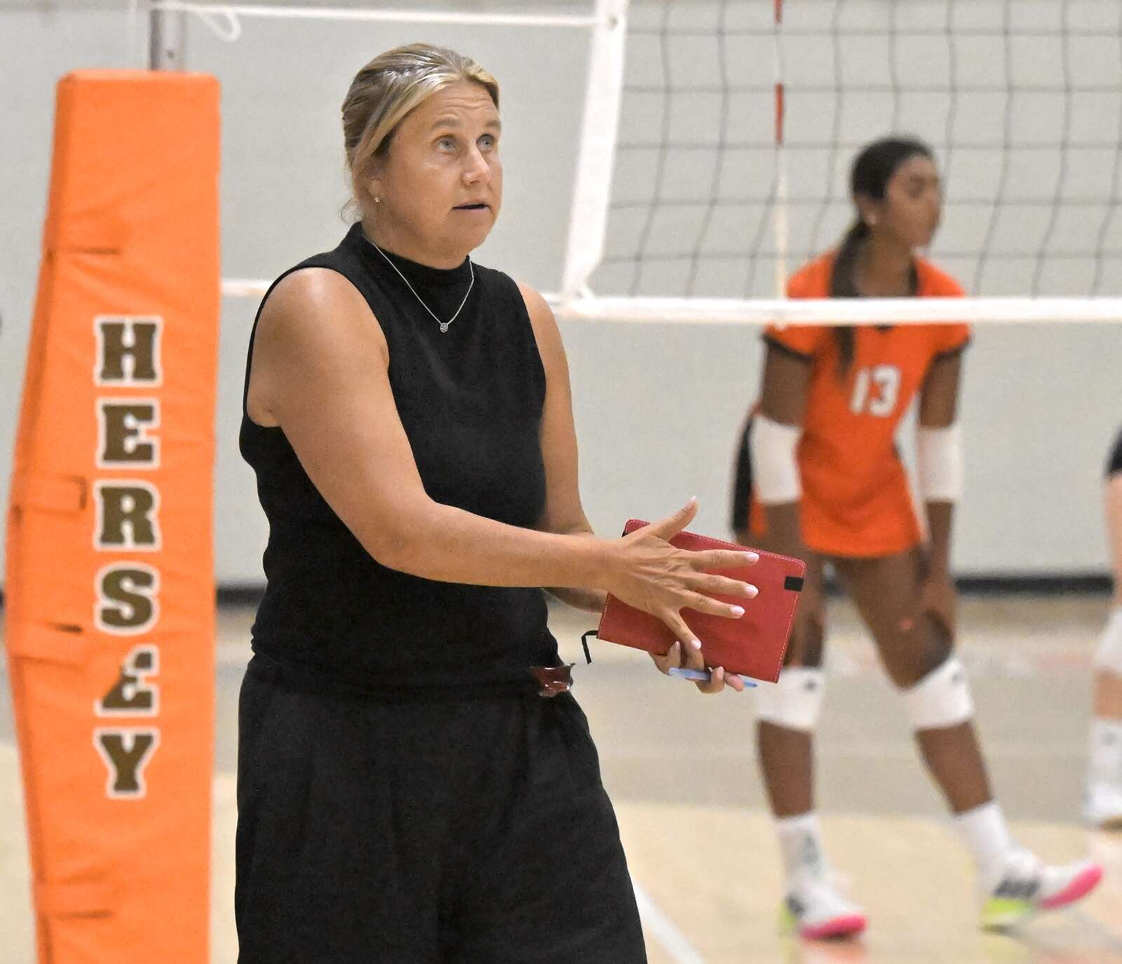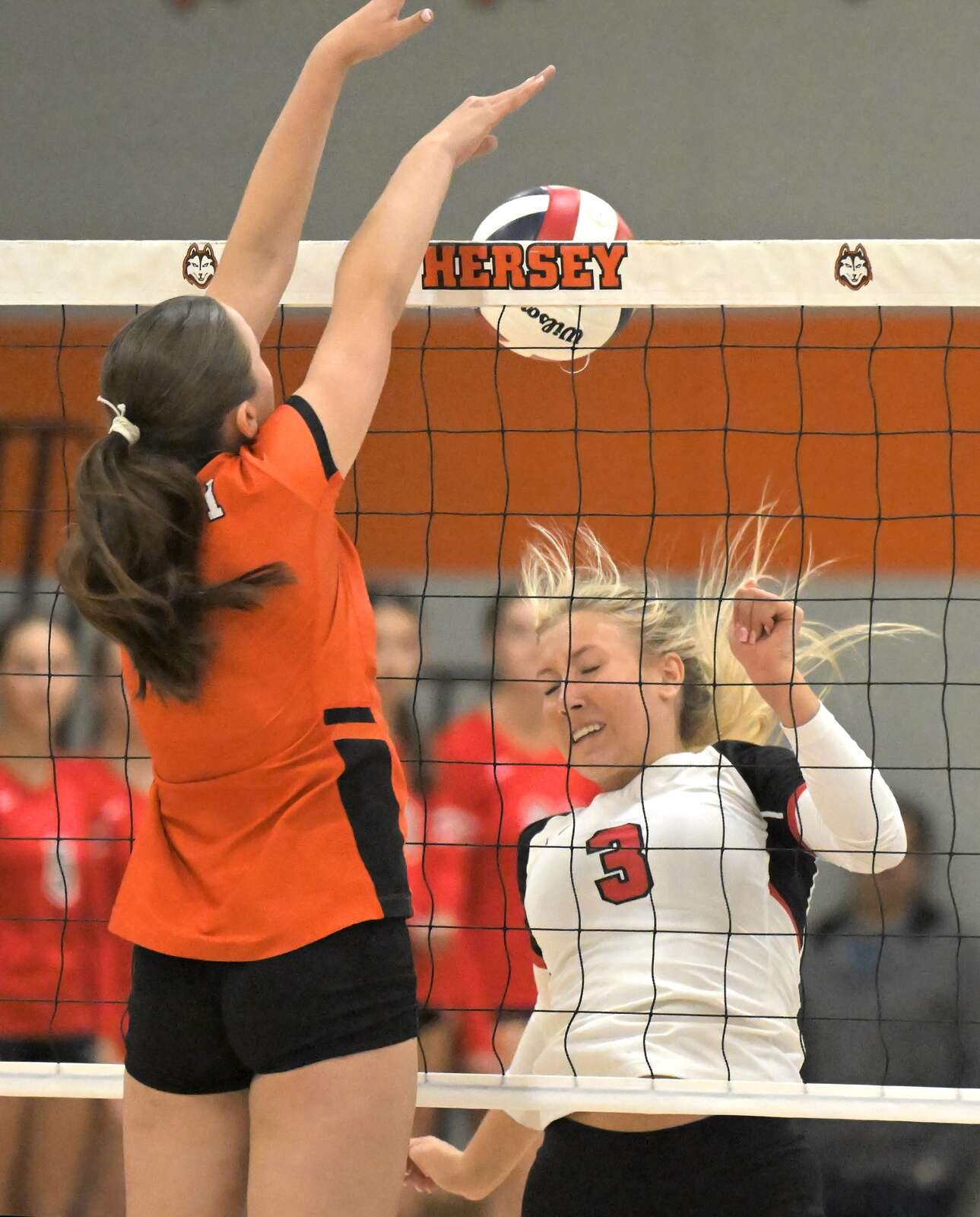 One new player for the Huskies is freshman Morgan Matteucci, who contributed 4 kills including a big one in the final set that got Hersey to within 22-21.