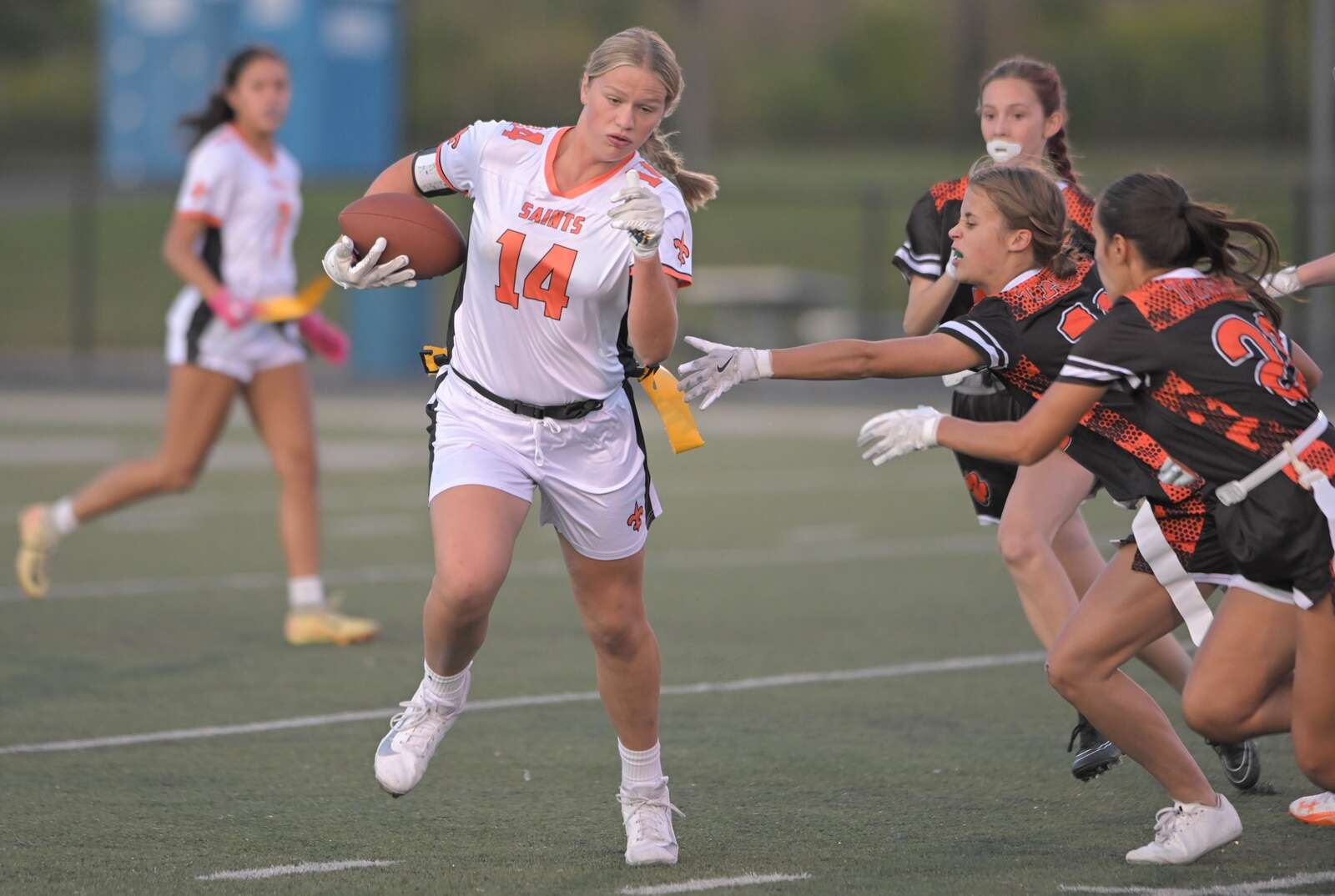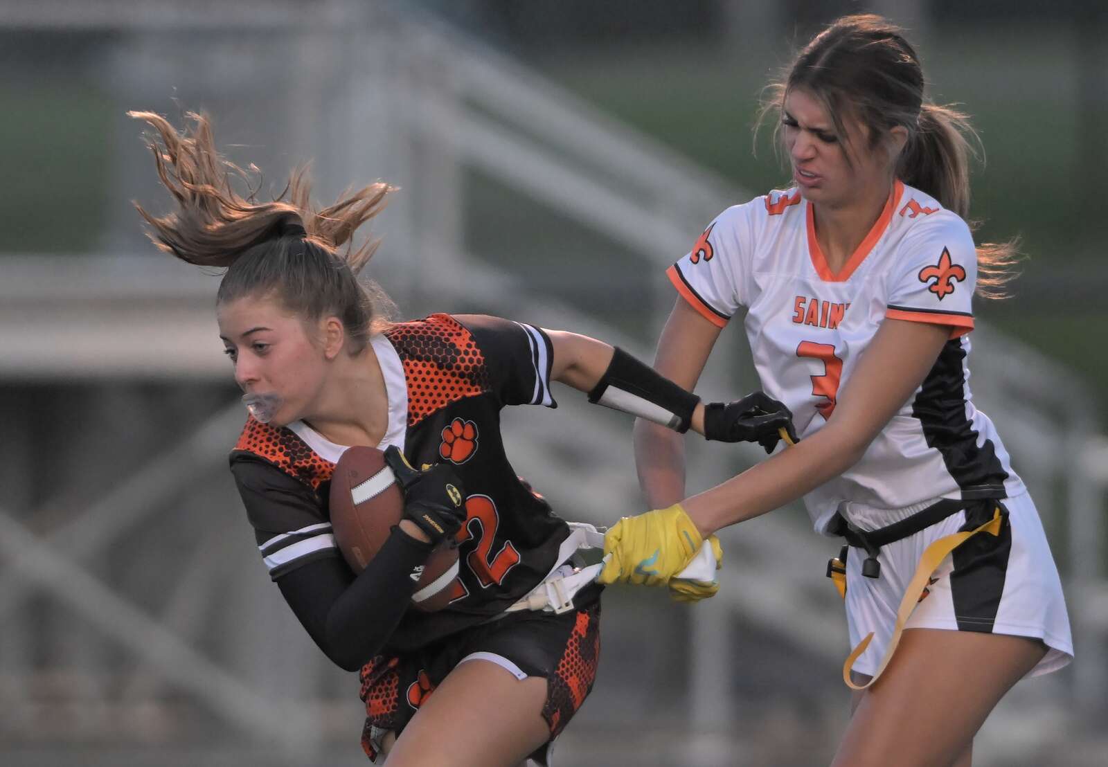 Girls flag football: Bigda, Schilb pace St. Charles East’s two-way effort in win over Wheaton Warrenville South