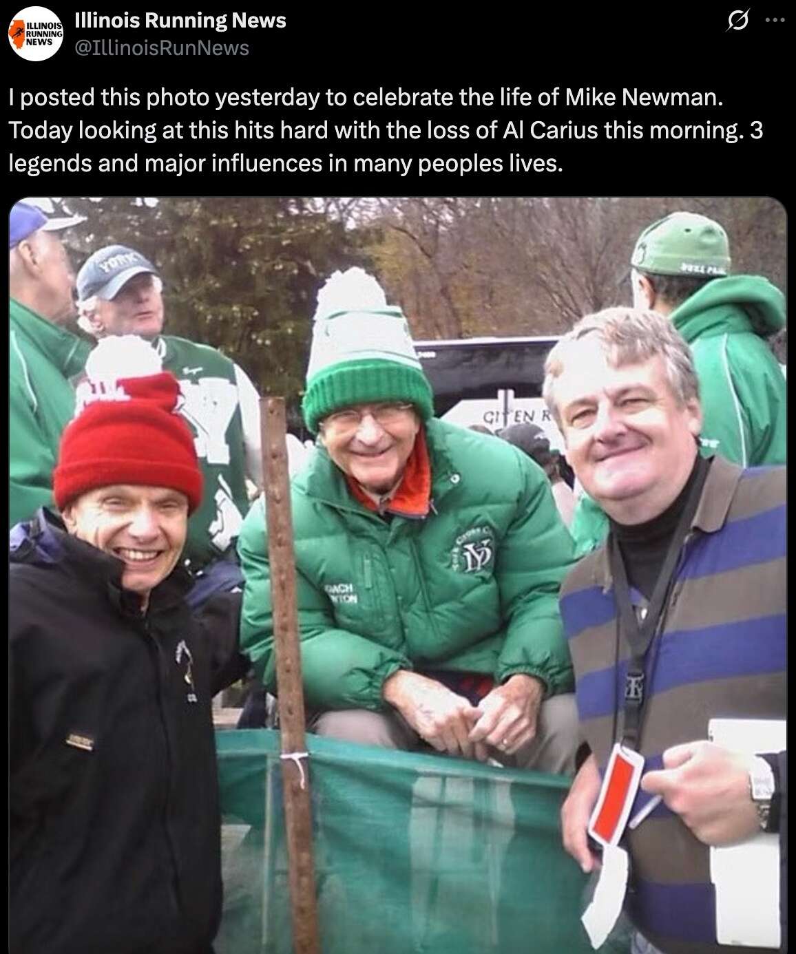 Two days later, on Tuesday morning, the legendary retired North Central College track and cross country coach Al Carius died at 83 after a long bout with cancer. Newman was one of thousands of athletes Carius coached in a 54-year career.