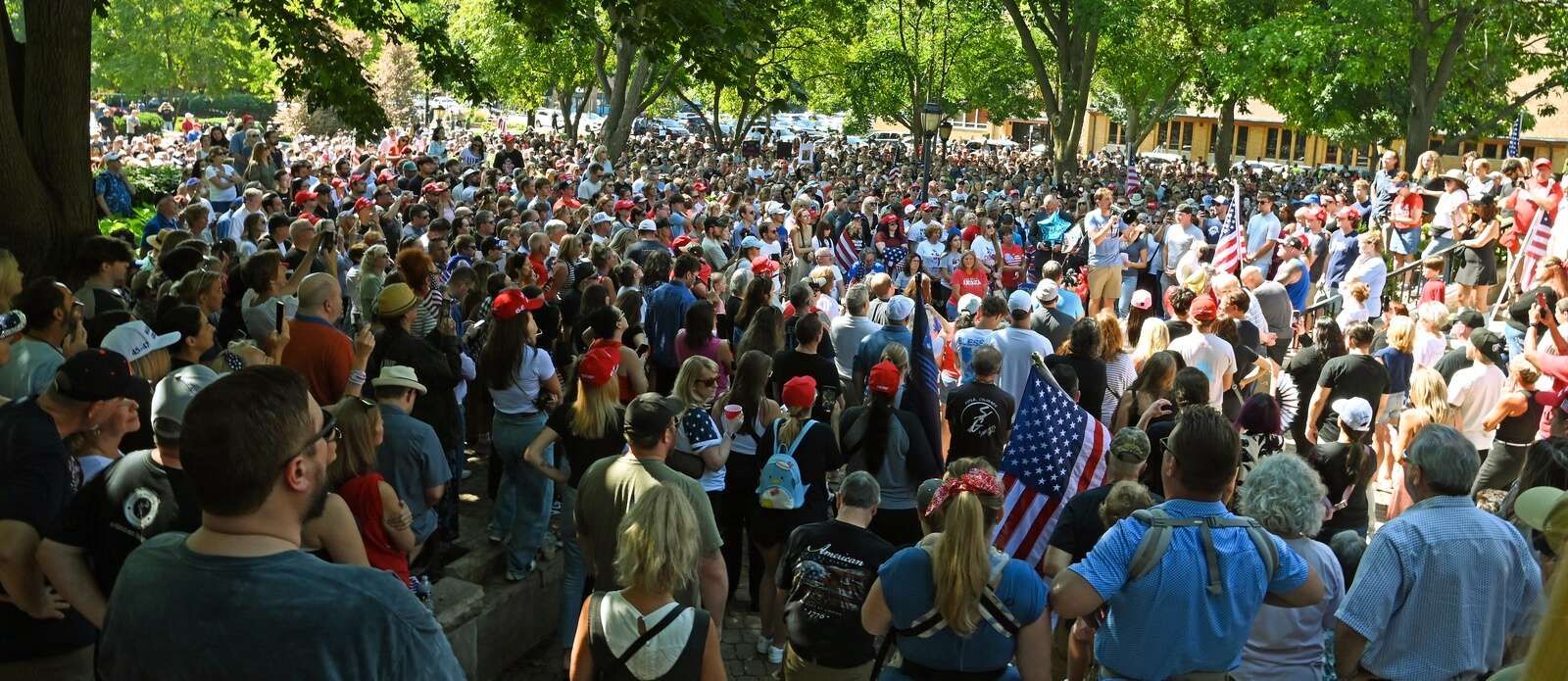 Symbols of patriotism and faith abounded during the two-hour event, including American flags and crosses. The event included prayers and a call for unity in the face of violence.