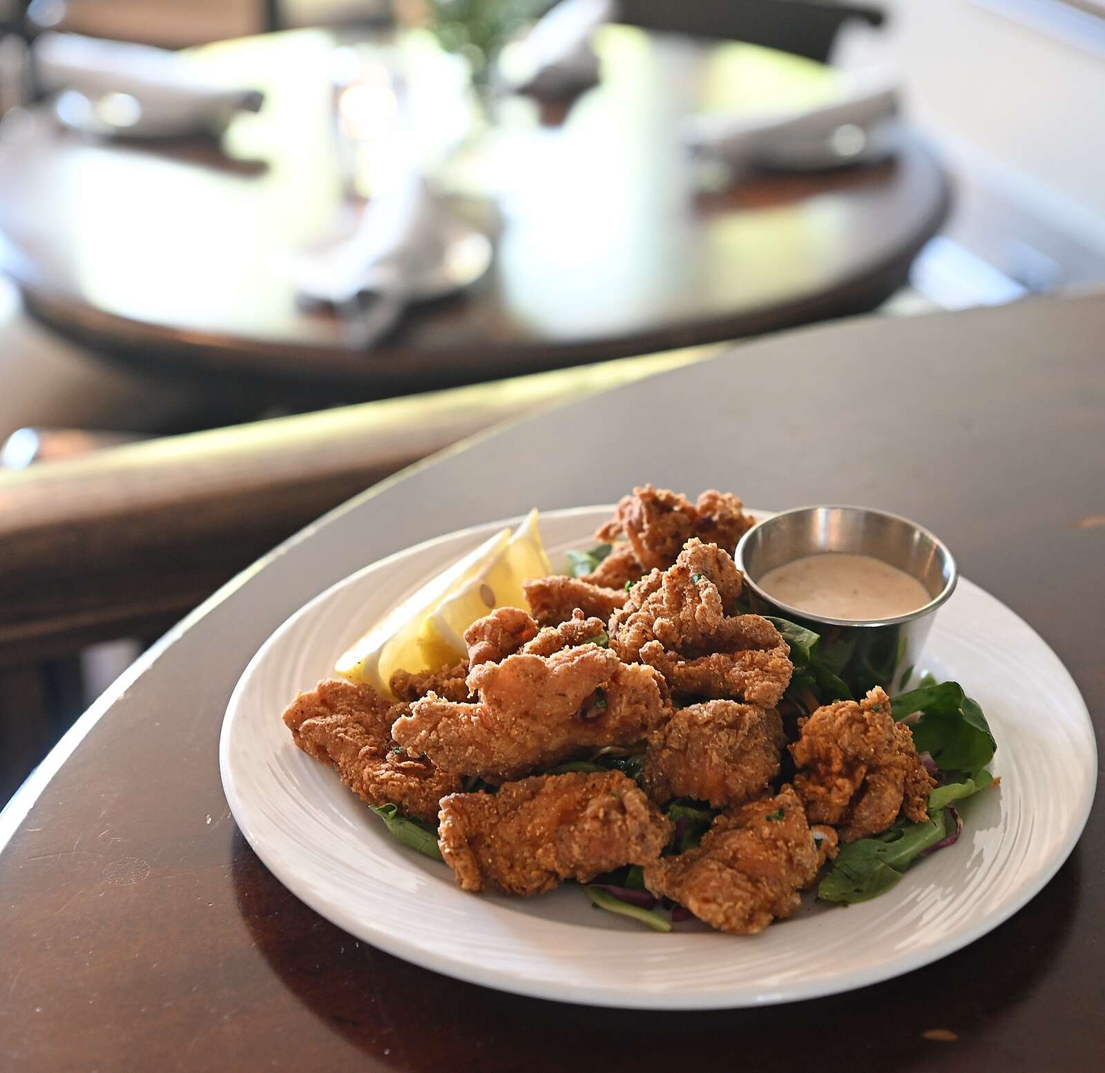 The alligator bites, a Southern specialty that The Patten House coats in a spicy cornmeal breading, are crunchy yet tender and served with a Cajun rémoulade.