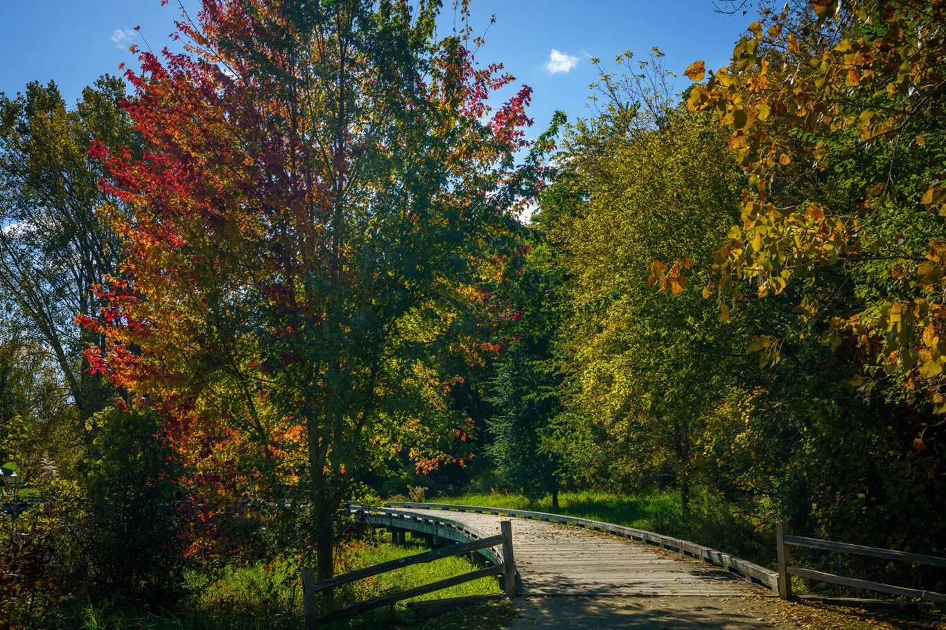 Visitors can explore 3.2 miles of trails that wind around the lakes and through quiet woodlands. A boardwalk and scenic overlooks offer peaceful views along the way. The entrance is on Route 120, west of Cedar Lake Road and east of Fairfield Road.
