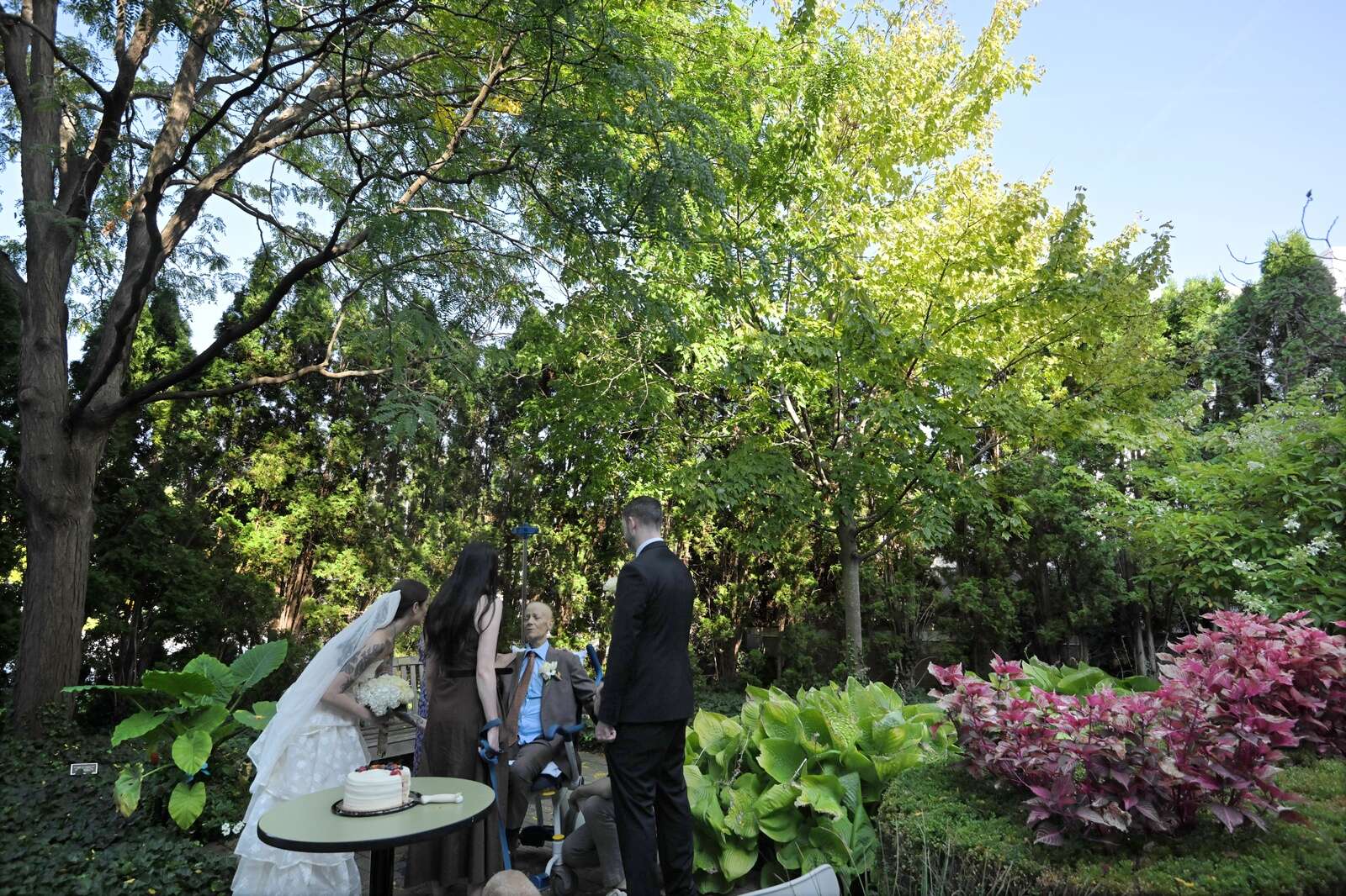 Besides the audience of doctors and nurses, attendees of the brief ceremony in the hospital garden Thursday afternoon included close family and friends. The Decourceys — who now live in Golden, Colorado, after meeting at work — will have a second wedding celebration for other family and friends next month.