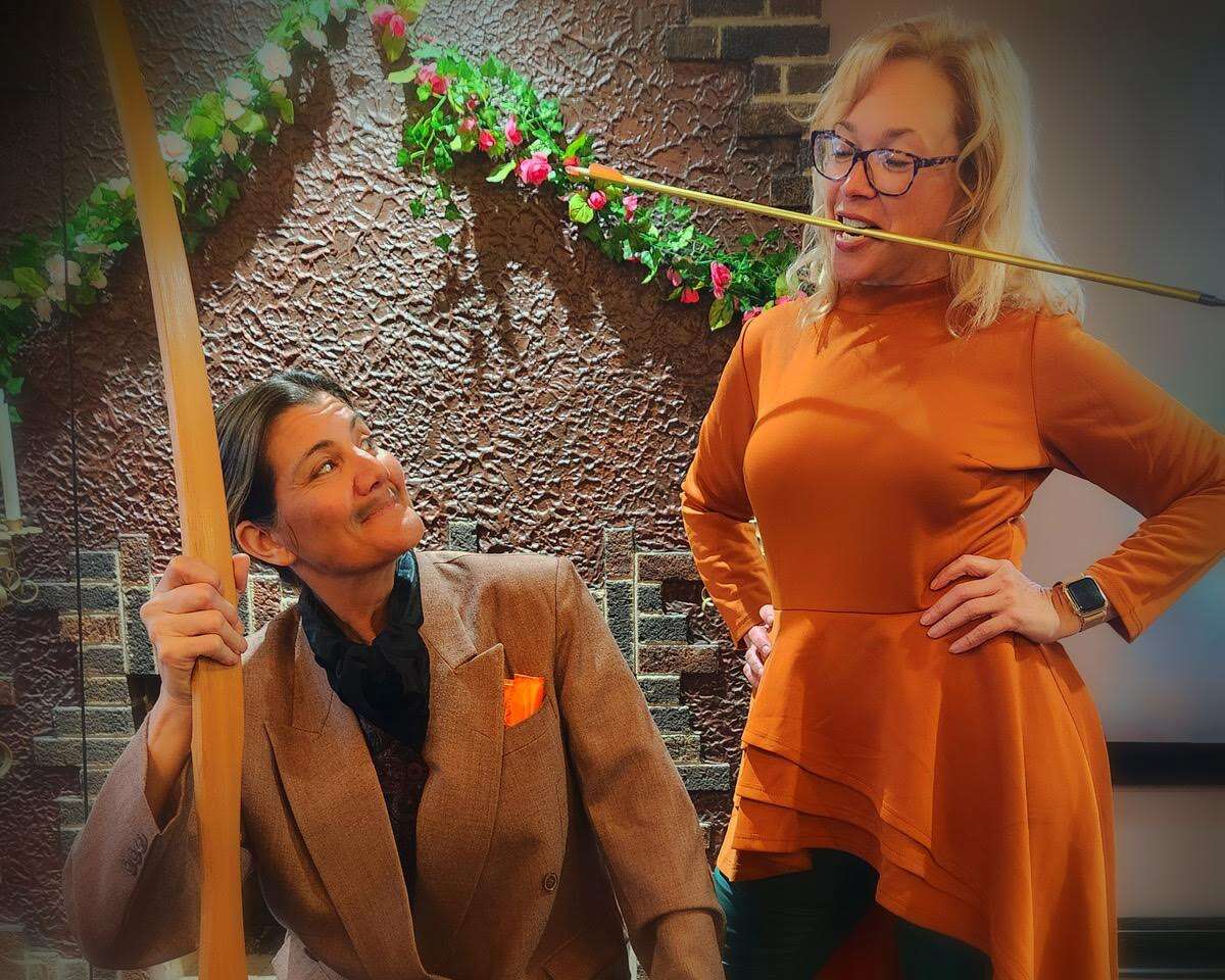 Laura Leonardo Ownby, left, and Tina Shelley co-star in Iambe Theatre Ensemble’s all-female production of William Shakespeare’s “Love’s Labour’s Lost.” Courtesy of Heidi Swarthout and Kate Grimaldi