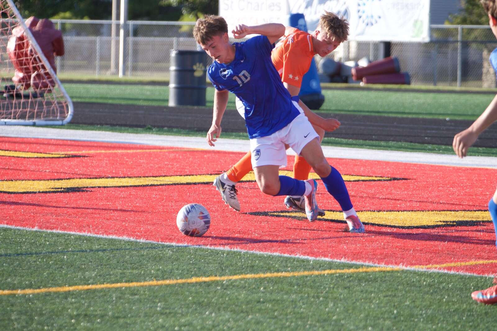 The goal was the only one that was not immediately followed by another goal. The Saints (7-3-2 overall, 2-0-2 DuKane) tied the game 1-1 in the 16th minute on a penalty kick from junior Sam Arville, while junior Dylan Carey gave them an advantage in the 52nd minute off of a header from a freekick before the North Stars tied it just four minutes later.