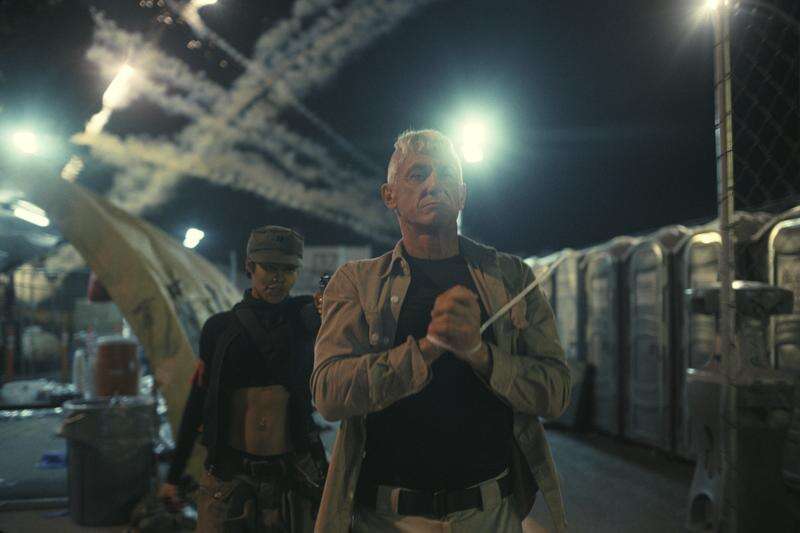 We first see Perfidia, dressed in all black, striding across an overpass. Below is an immigration detention center. The atmosphere is tumultuous. Bob is there, ready to set off fireworks or bombs, but has little clue of the plan. She assures him: “Make it big, make it bright. Inspire me.”