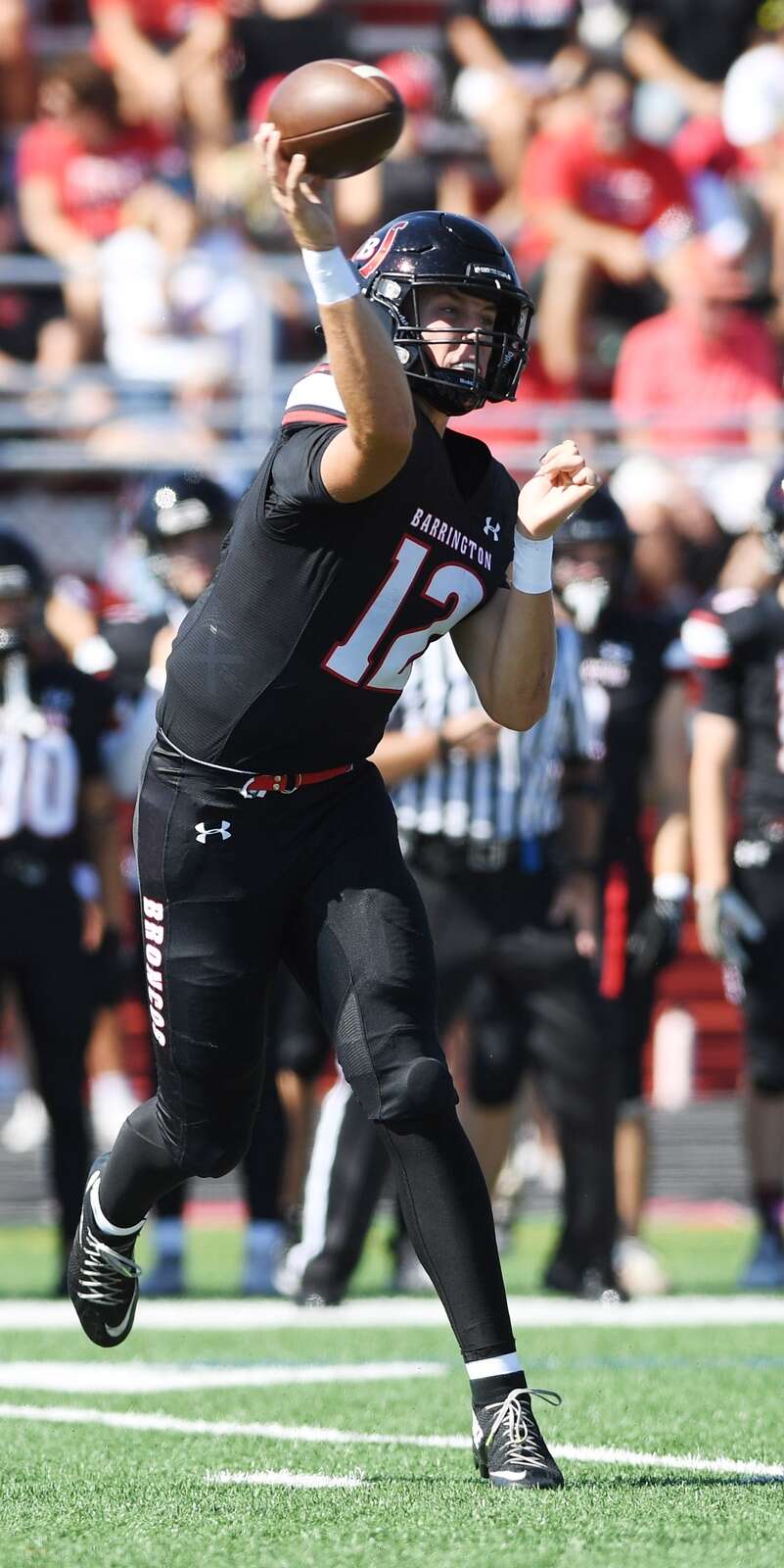 Barrington quarterback Luke Tepas throws a pass during Saturday’s home game against Palatine. Joe Lewnard/jlewnard@dailyherald.com