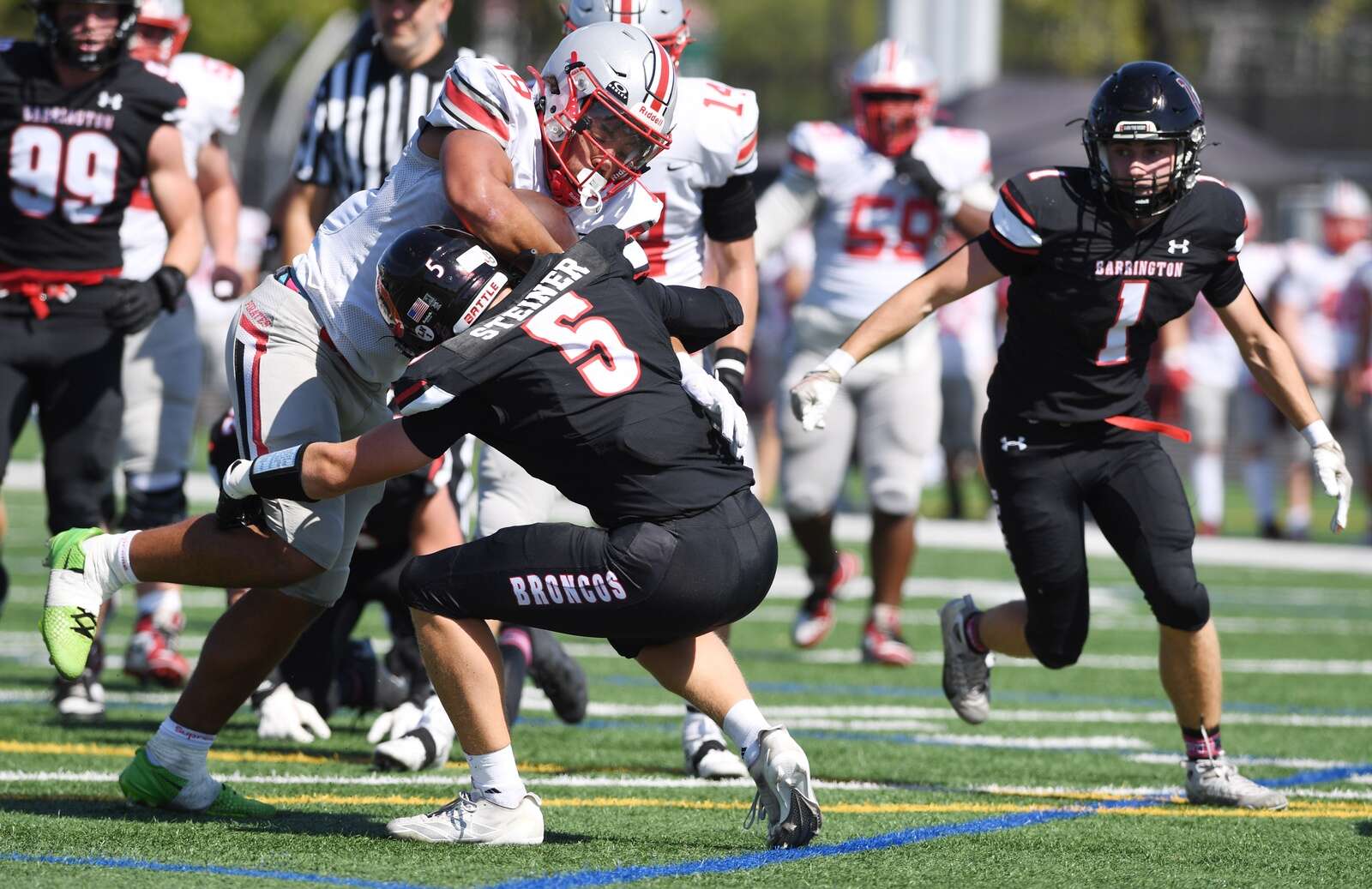 Barrington (4-1, 1-0) needed only 45 seconds at the outset of the second half to stretch its lead to 28-14. Sophomore running back Lamar Osterhues sprinted 41 yards for a TD on the third play after halftime.
