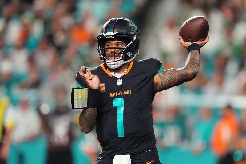 Tagovailoa completed 17 of 25 passes and didn’t have a turnover for the first time this season as he moved to 7-0 against the Jets as Miami’s starter. The Dolphins (1-3) won their 10th straight at home against the Jets (0-4), who are still searching for their first win under coach Aaron Glenn.