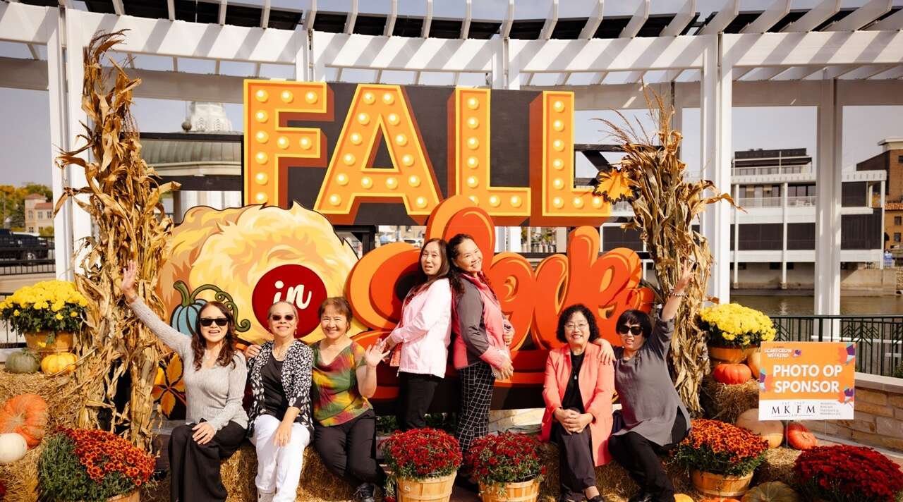 Visitors capturing a photo of the “Fall in Love” photo opportunity on the 1st Street Plaza during St. Charles Scarecrow Weekend. Courtesy of Brigette Burgman Photography