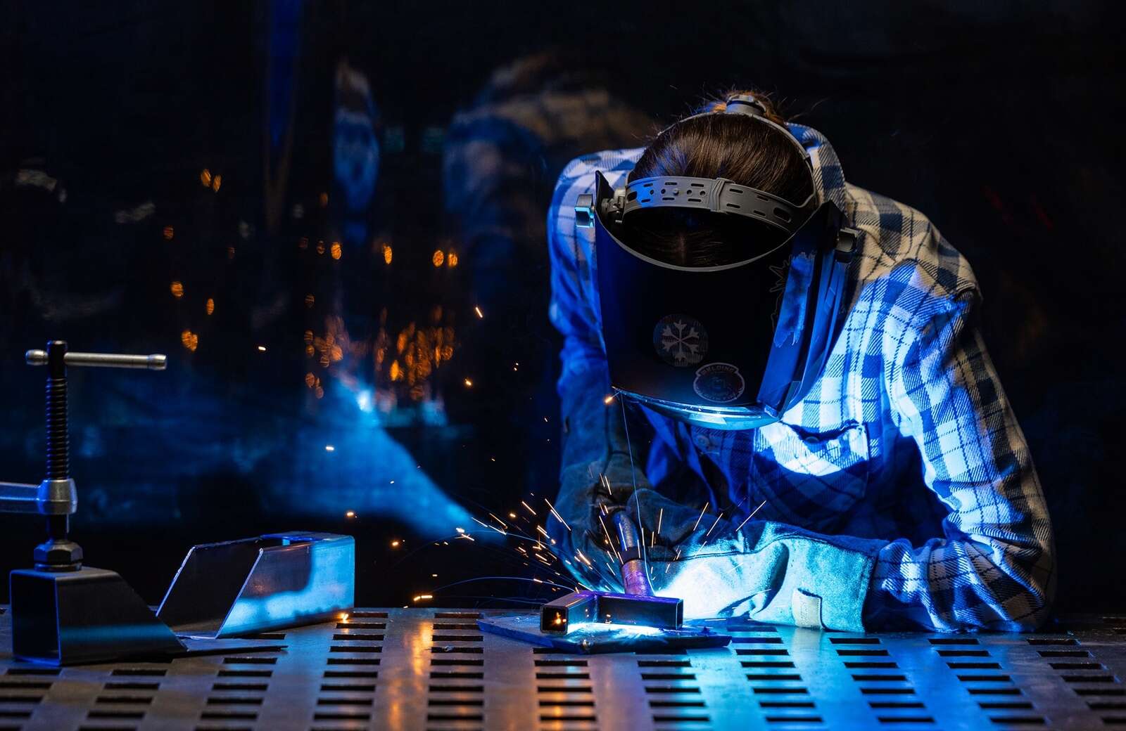 Kat Piatsevich works on a welding piece at Harper College. Courtesy of Harper College