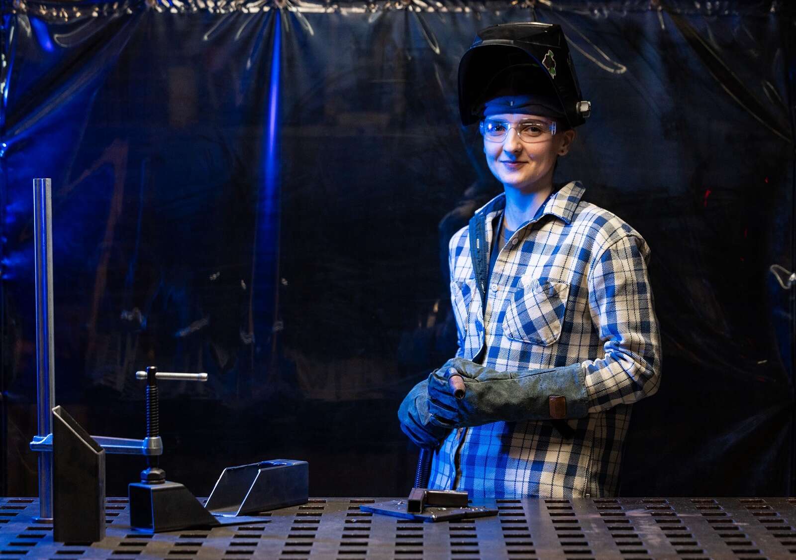 Harper student Katsiaryna Piatsevich is pursuing an unlikely duo of credentials in welding and fashion. Courtesy of Harper College