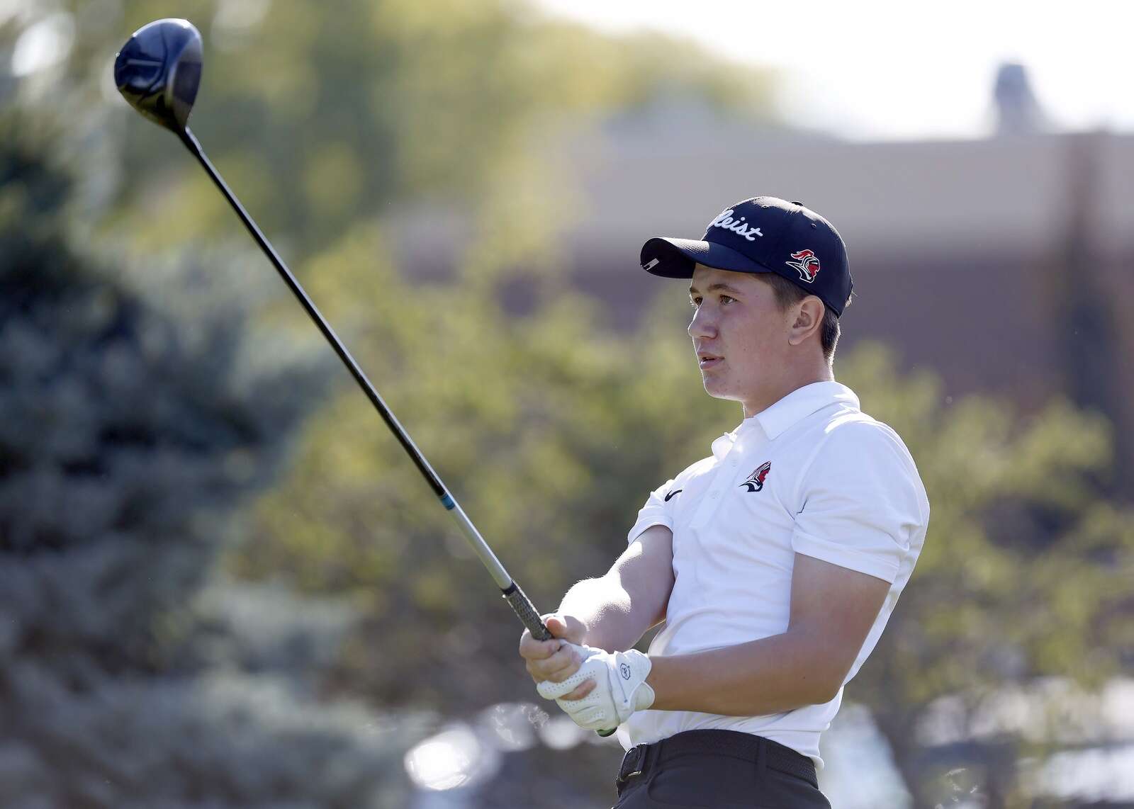 Dane Currie of McHenry watches his tee shot during the Class 3A boys golf sectional Monday, Oct. 6, 2025 at the Buffalo Grove Golf Club in Buffalo Grove. Brian Hill/bhill@dailyherald.com