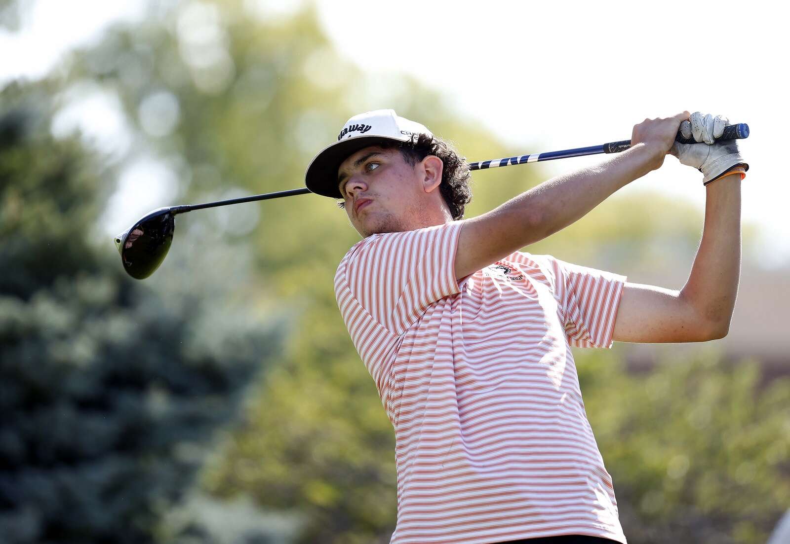 Charlie Hulsebosch of Palatine watches his tee shot during the Class 3A boys golf sectional Monday, Oct. 6, 2025 at the Buffalo Grove Golf Club in Buffalo Grove. Brian Hill/bhill@dailyherald.com