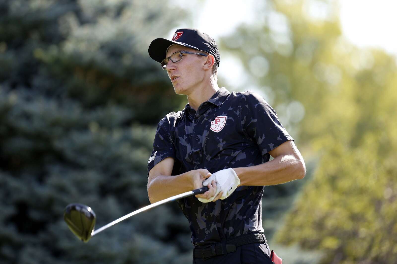 Ryan Murray of Prospect watches his tee shot during the Class 3A boys golf sectional Monday, Oct. 6, 2025 at the Buffalo Grove Golf Club in Buffalo Grove. Brian Hill/bhill@dailyherald.com
