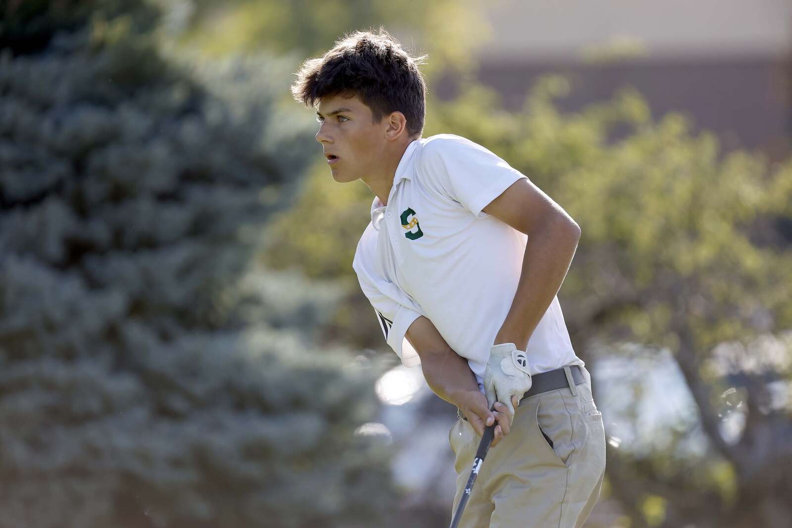 Rocco Peters of South Elgin watches his tee shot during the Class 3A boys golf sectional Monday, Oct. 6, 2025 at the Buffalo Grove Golf Club in Buffalo Grove. Brian Hill/bhill@dailyherald.com