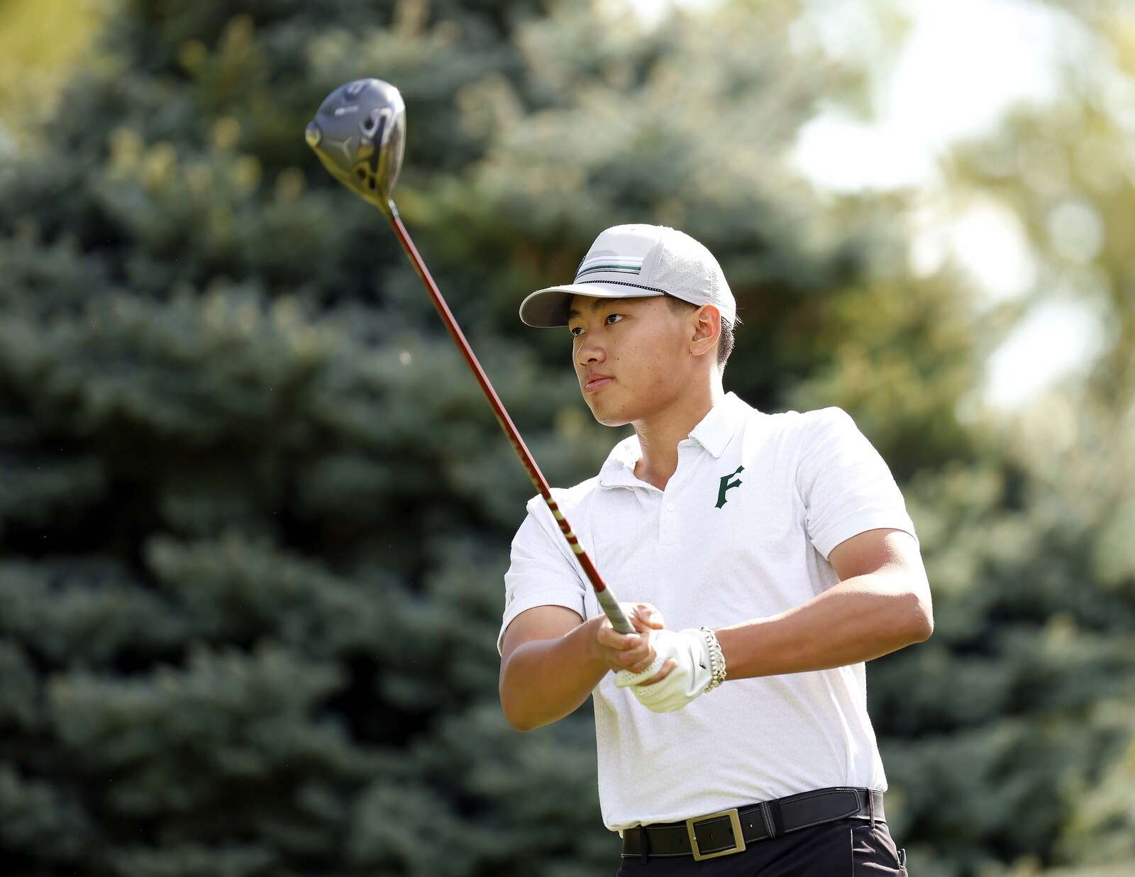 Rayden Tee of Fremd watches his tee shot during the Class 3A boys golf sectional Monday, Oct. 6, 2025 at the Buffalo Grove Golf Club in Buffalo Grove. Brian Hill/bhill@dailyherald.com