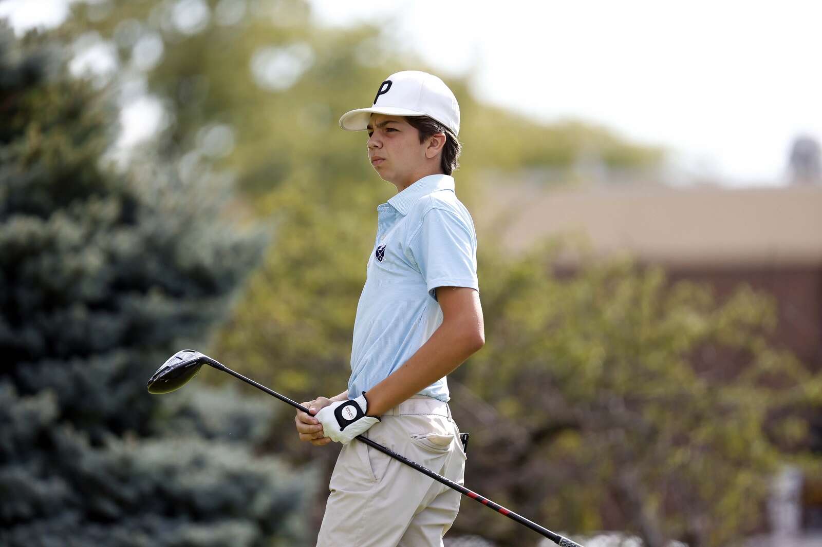 Luke Ginsberg of Prospect watches his tee shot during the Class 3A boys golf sectional Monday, Oct. 6, 2025 at the Buffalo Grove Golf Club in Buffalo Grove. Brian Hill/bhill@dailyherald.com