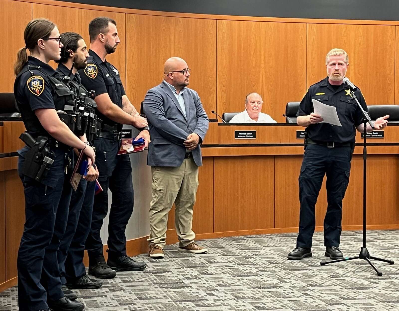 The commendations were presented during the evening’s city council meeting. Two additional officers scheduled to receive lifesaving awards didn’t attend the ceremony.