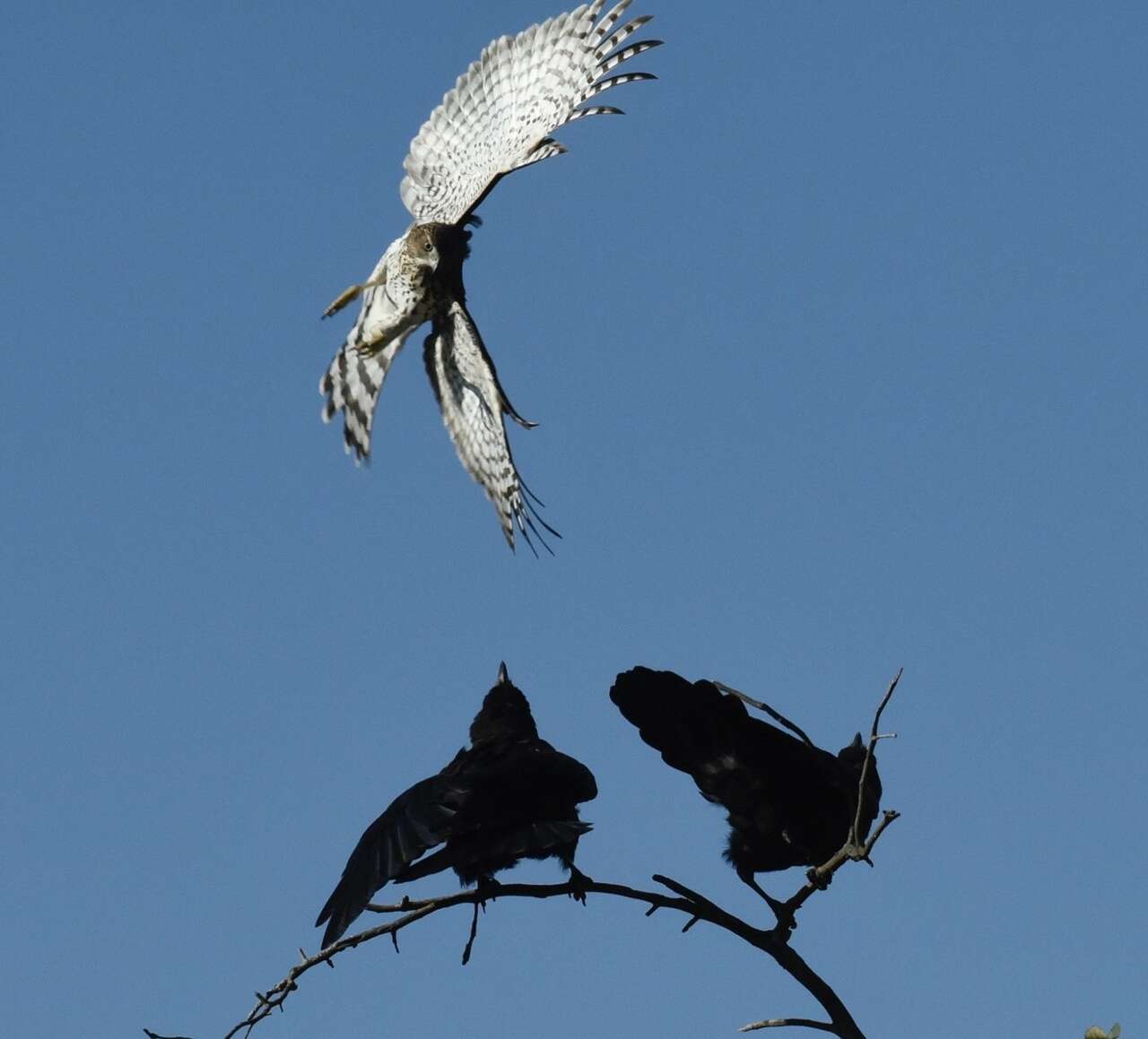 A hawk looking to intimidate some crows in the backyard of a Tower Lakes home on Sept. 4, 2025. Sherry Lajiness of Tower Lakes