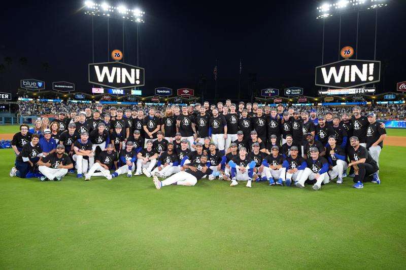 Realmuto had pointed to first when the two-hopper hit off Kerkering’s glove and rolled just in front of the mound. Fans in the crowd of 50,563 at Dodger Stadium erupted after spending the final three innings on their feet.