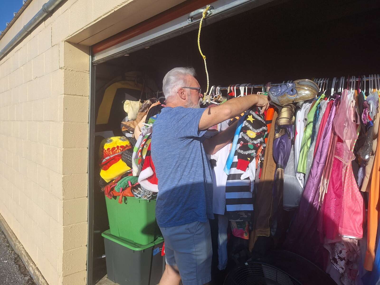 Waggoner uses a dog brush to comb out costumes with fake fur, and he soaks wigs in fabric softener, which he said makes the fibers relax for easier detangling. He spends nearly $5,000 a year on storage for the costumes.
