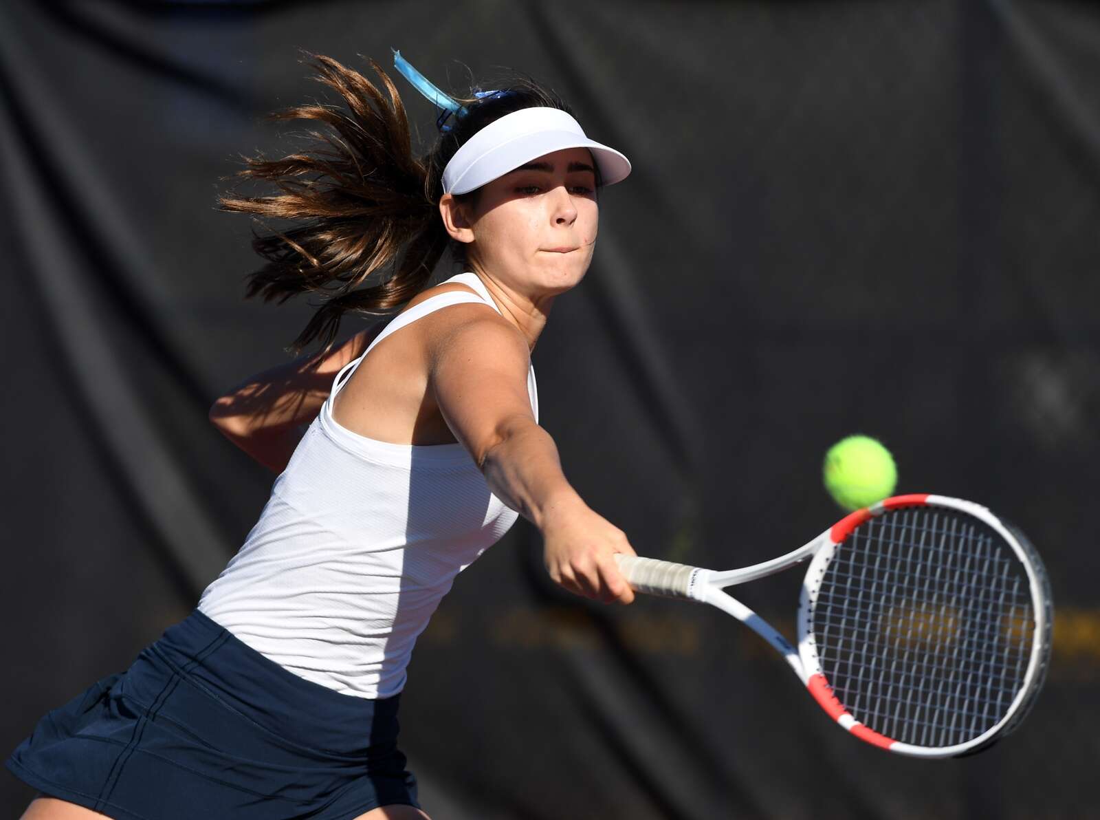 Prospect first doubles player Casey Brosnan returns the ball during the MSL girls tennis tournament at Conant High School on Saturday, Oct. 11, 2025 in Hoffman Estates.