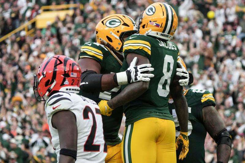 GREEN BAY, Wis. — Josh Jacobs rushed for two touchdowns and the Green Bay Packers held off Cincinnati for a 27-18 victory in Joe Flacco’s Bengals debut on Sunday.