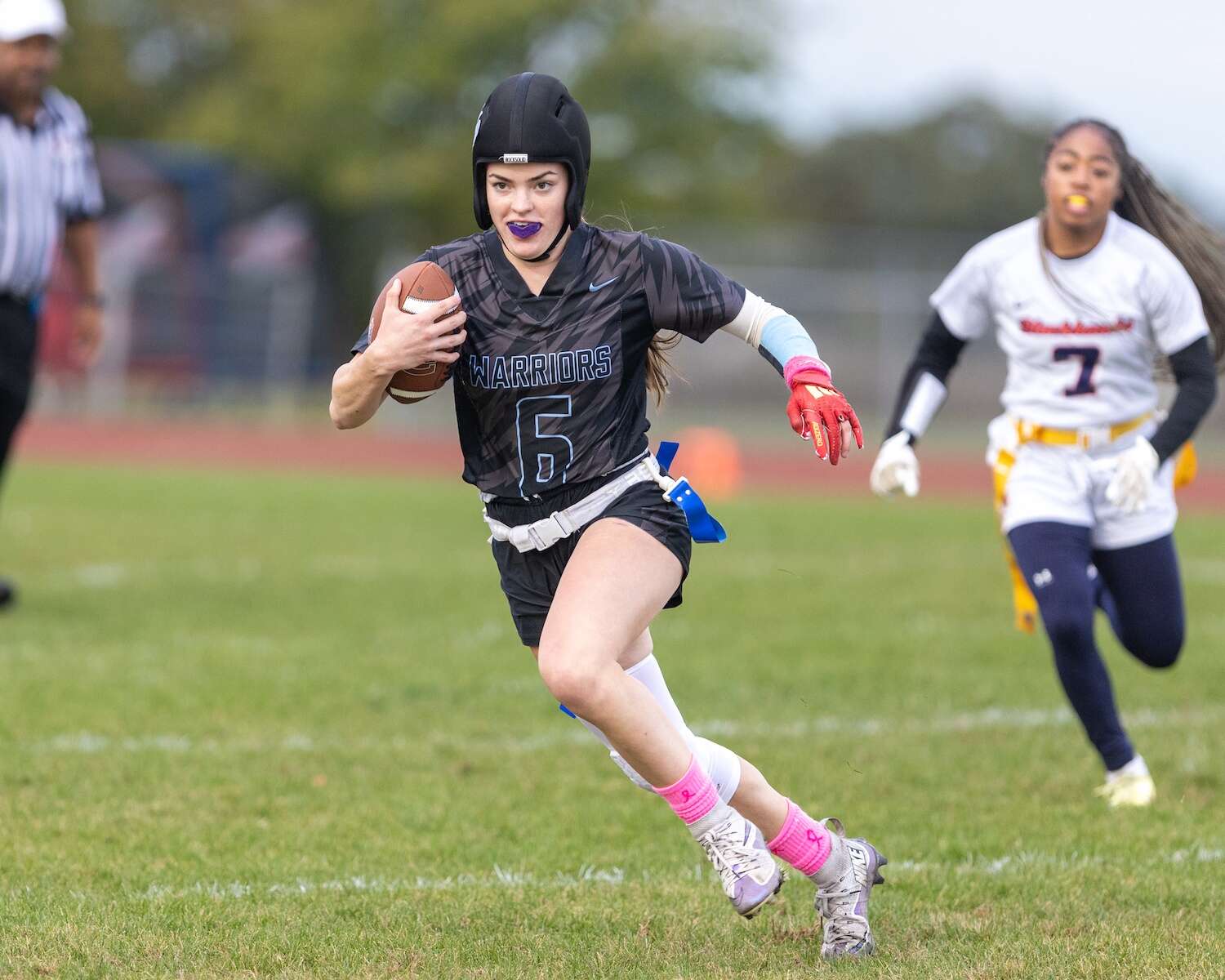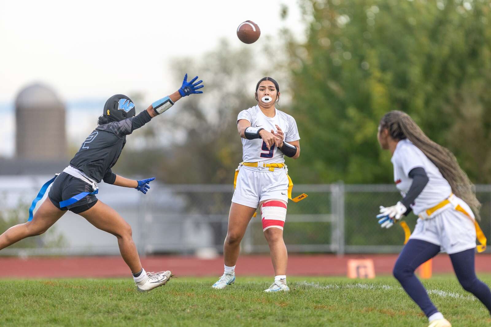 “We asked her to play quarterback her sophomore year after she hadn’t played it. We were like, ‘Hey, you play softball,’ ” Karos said. “As Marli builds her confidence, she can be scary good. She has played every different style of flag there is, and this is the fastest the game is now. Super proud of her.”