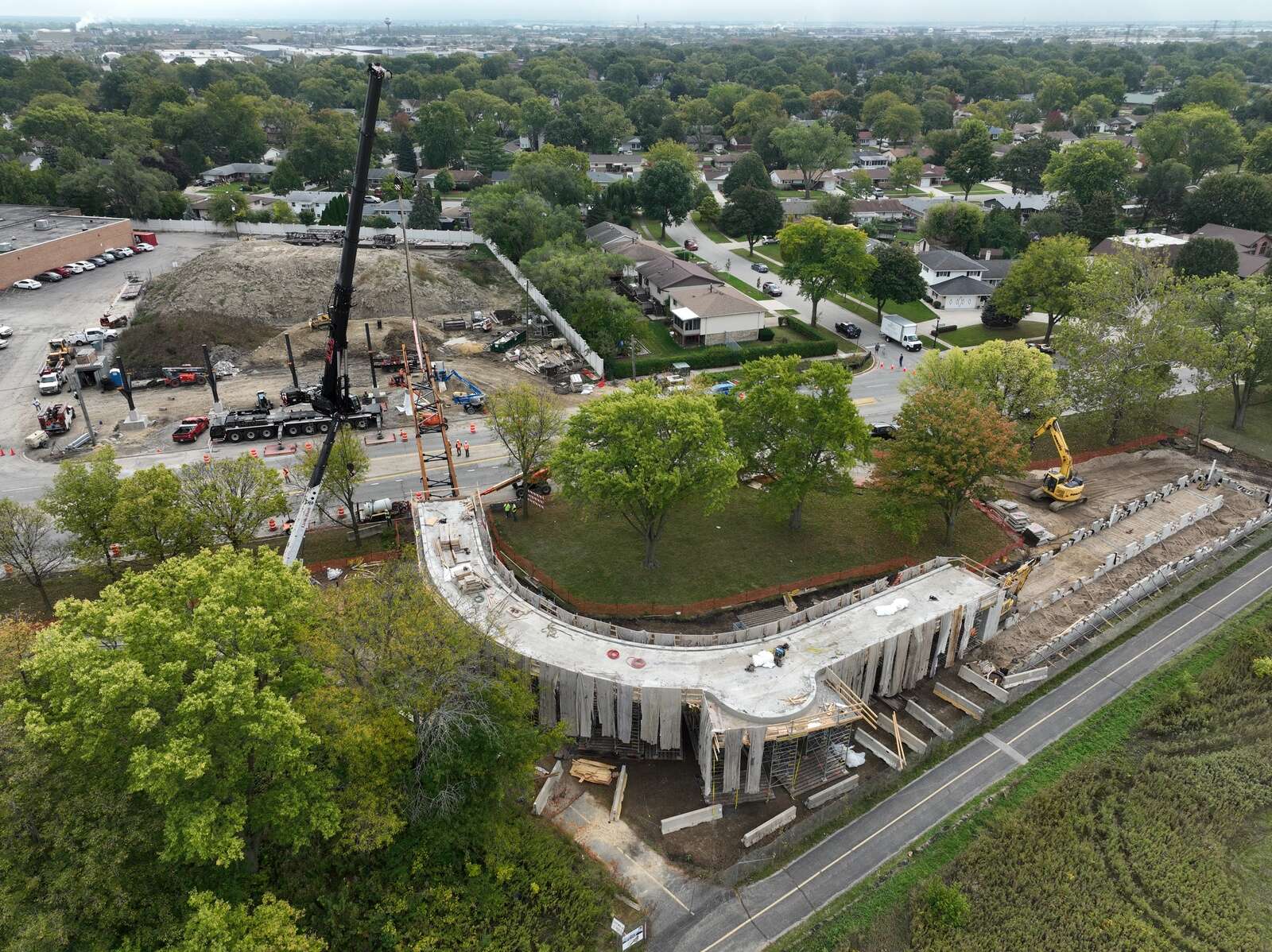 When completed next year, the $8.4 million pedestrian bridge will connect the Busse Woods forest preserve on the west side of Arlington Heights Road with the new The Vue development across the road.