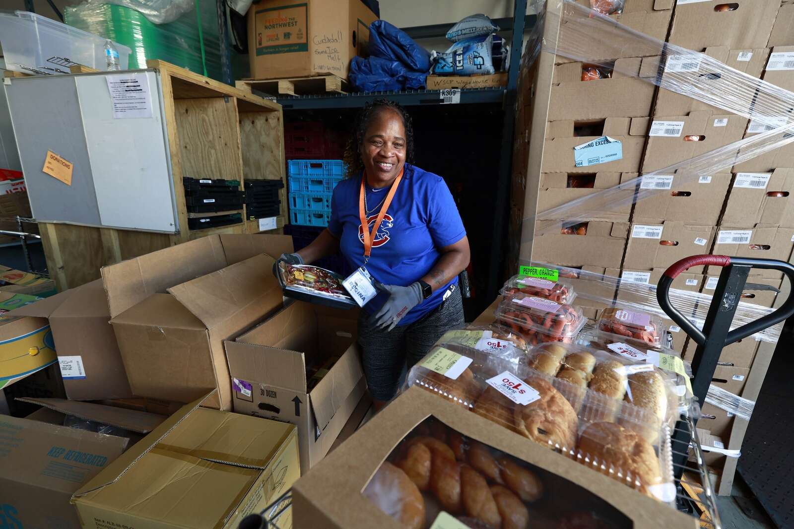 The octogenarian volunteer, attentive and warm, helps people know where to go and what to do. On a recent morning, she guided a woman with a young child to the pantry’s market in Woodridge. A quote attributed to Mother Teresa is displayed in a hallway: “If you can’t feed a hundred people, then feed just one.”