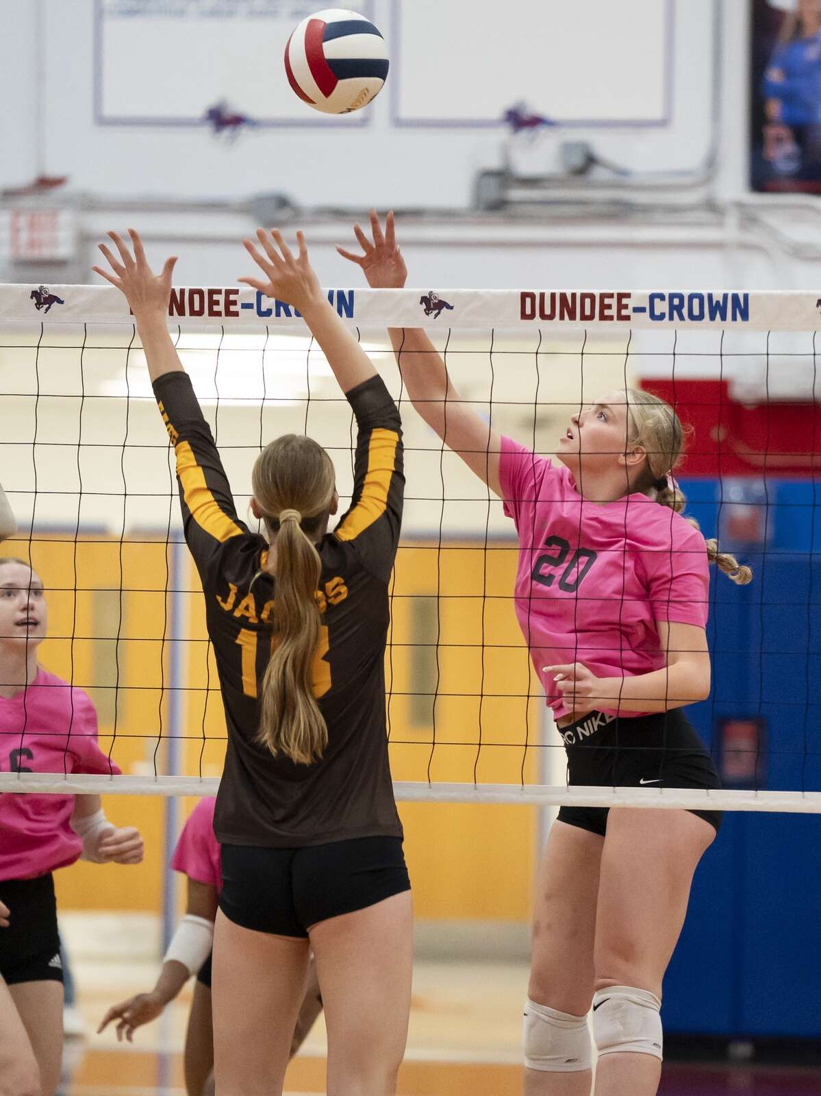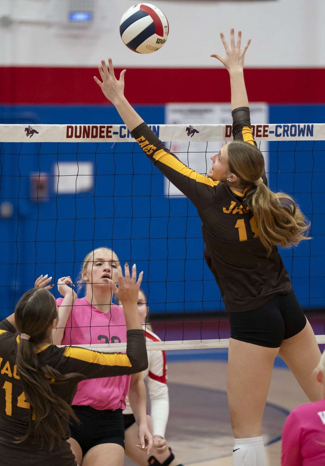 Girls volleyball: Dundee-Crown, Bruce spin to win against Jacobs