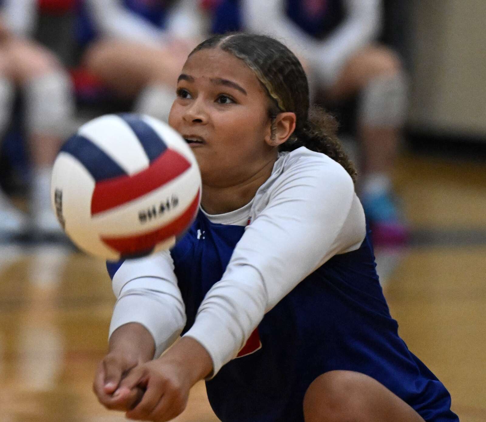 Madalene Mecki had 2 aces for the Rams, who held a 21-20 lead on a service point by sophomore Alivia Salzman late in the first set.