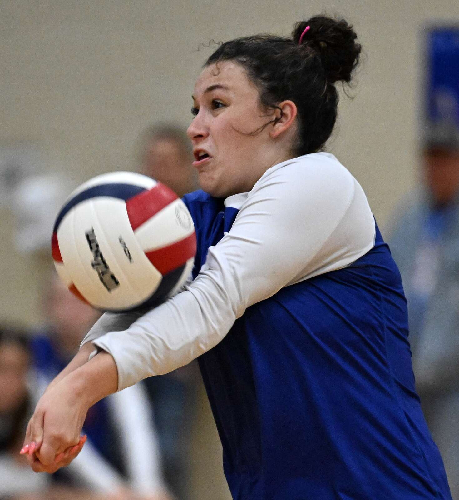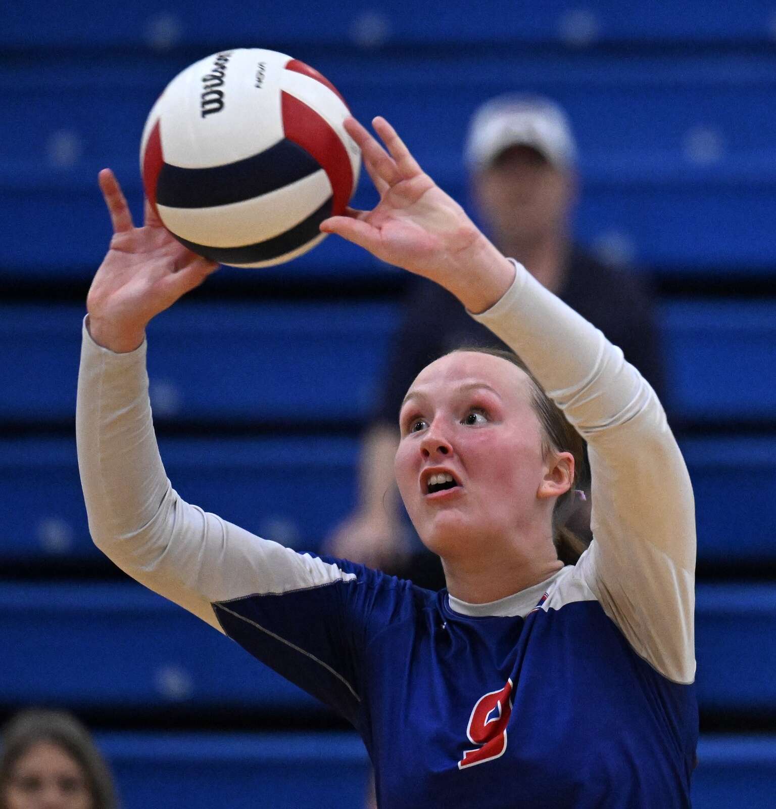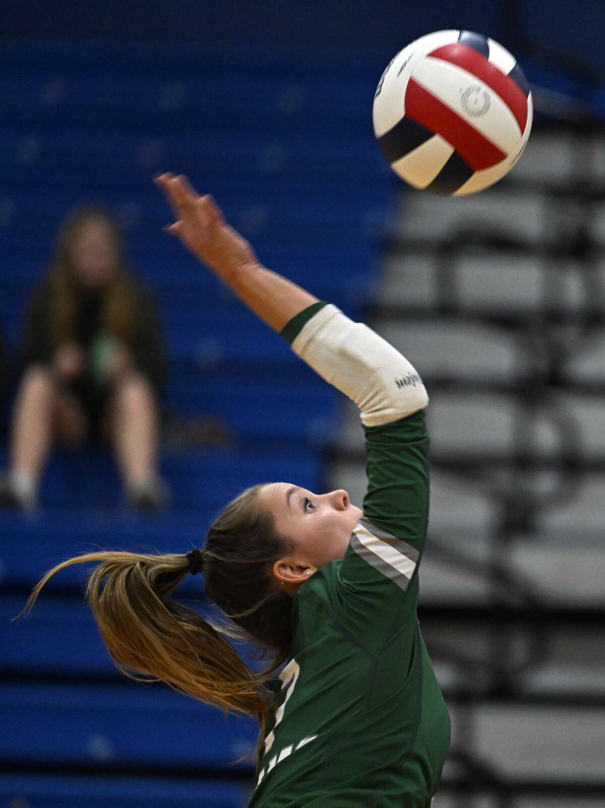 Isabel Stauber was another key contributor on the attack for Lakes with 2 kills late in the second set while teammate Emily Johnson's spike made the score 19-14 late in the second set.
