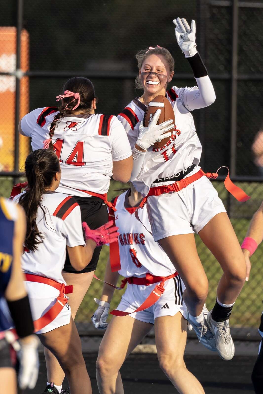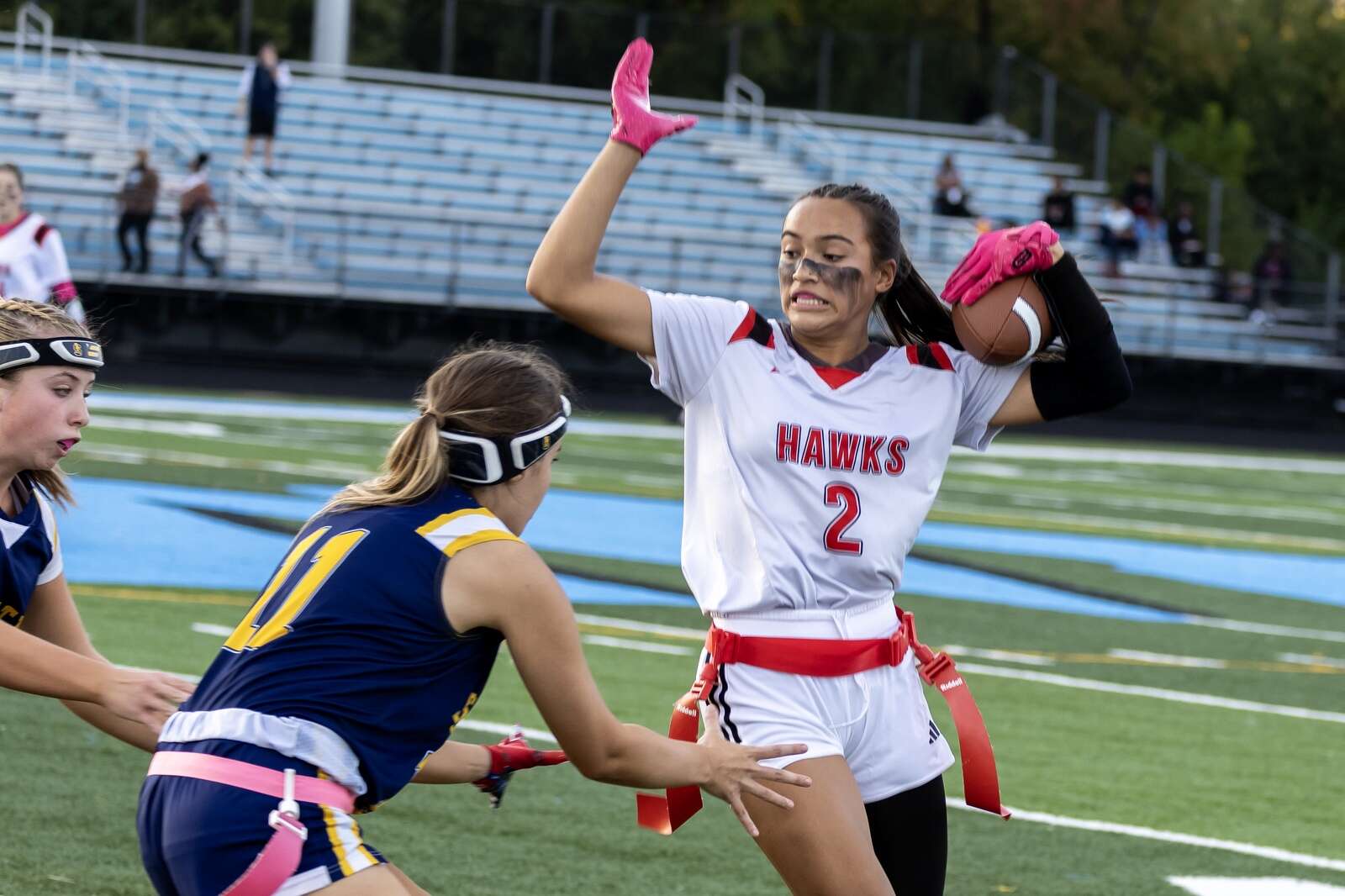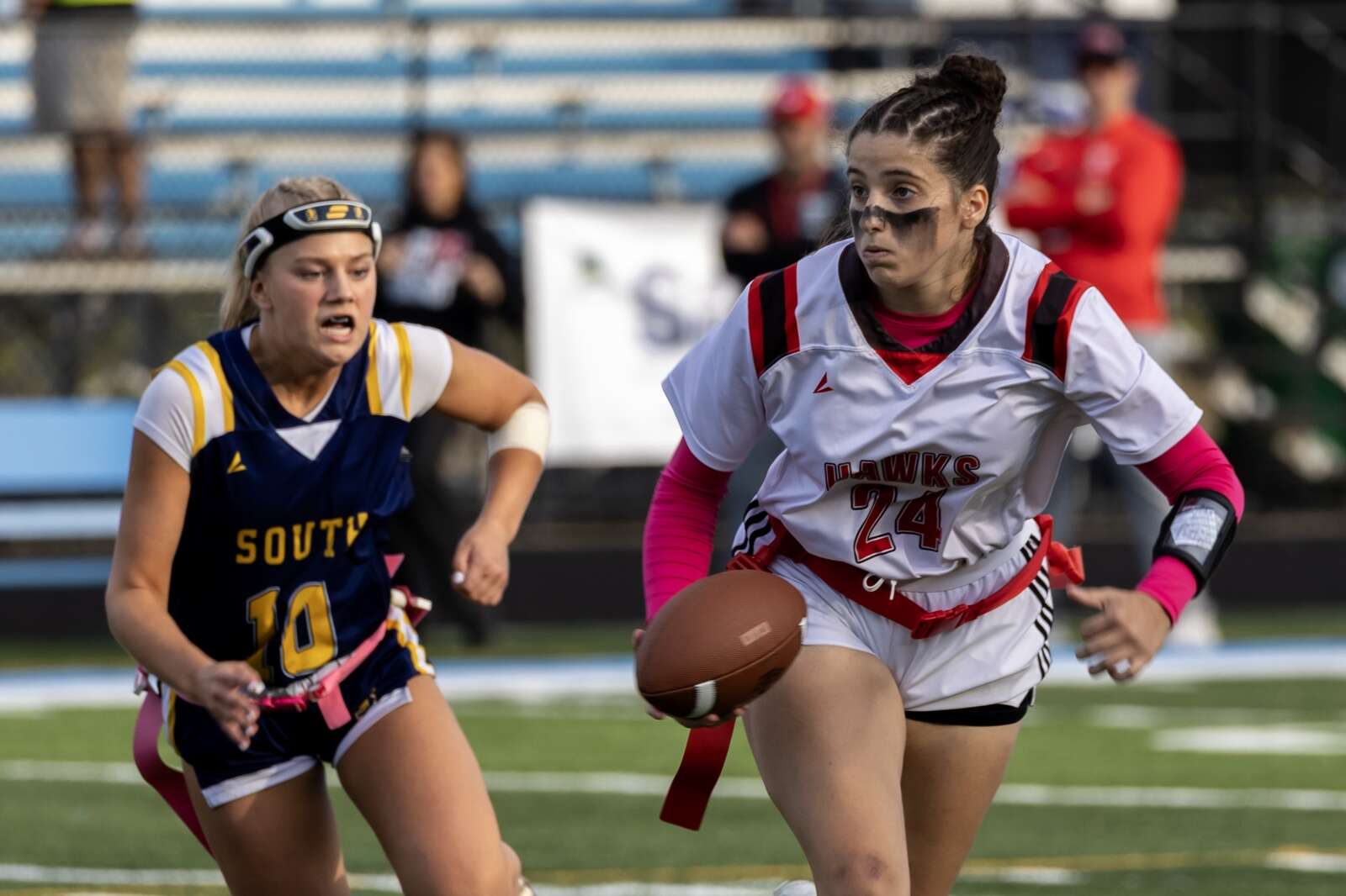 A couple of big sacks from Maine South senior Ella Rice and an interception by classmate Amelia Fernandez gave the Hawks a huge defensive boost in the first half.