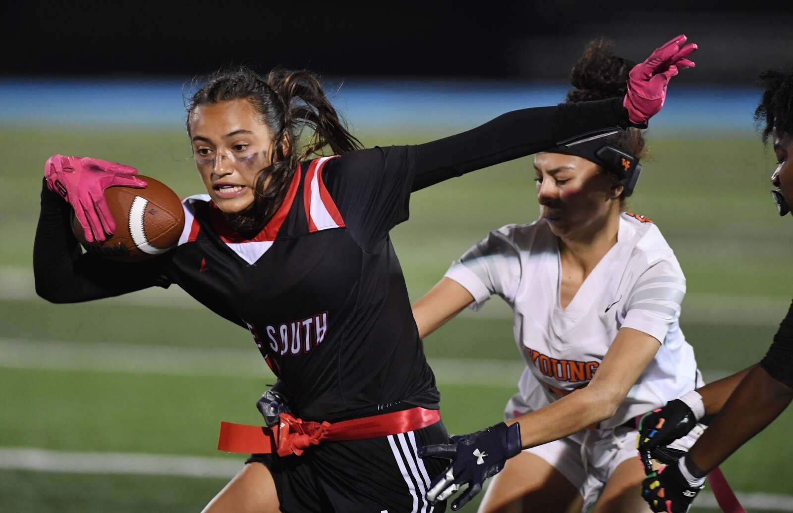 Ella Rice was consistently in the backfield causing havoc for Young’s offense. She tallied two sacks and three flag pulls. Nellie Ossmo led the Hawks with six flag pulls.