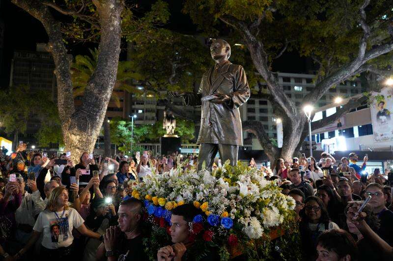Thousands more who couldn't travel to Rome gathered overnight in the Caracas plaza outside the Nuestra Señora de La Candelaria church, where a 26-foot (8 meter) statue of Hernández stands, and watched the Mass from Rome on a giant screen.