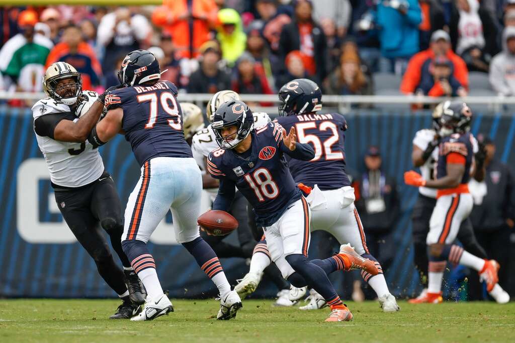 But the development hasn’t been perfect. A week after Benedet overpowered some Washington Commanders in his first start at the spot, he made some mistakes against the New Orleans Saints on Sunday. Benedet was called for two false starts and also missed some assignments that led to scrambles by quarterback Caleb Williams.