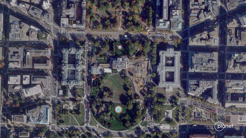 A satellite image from Planet Labs PBC shows demolition of the East Wing of the White House on Thursday.