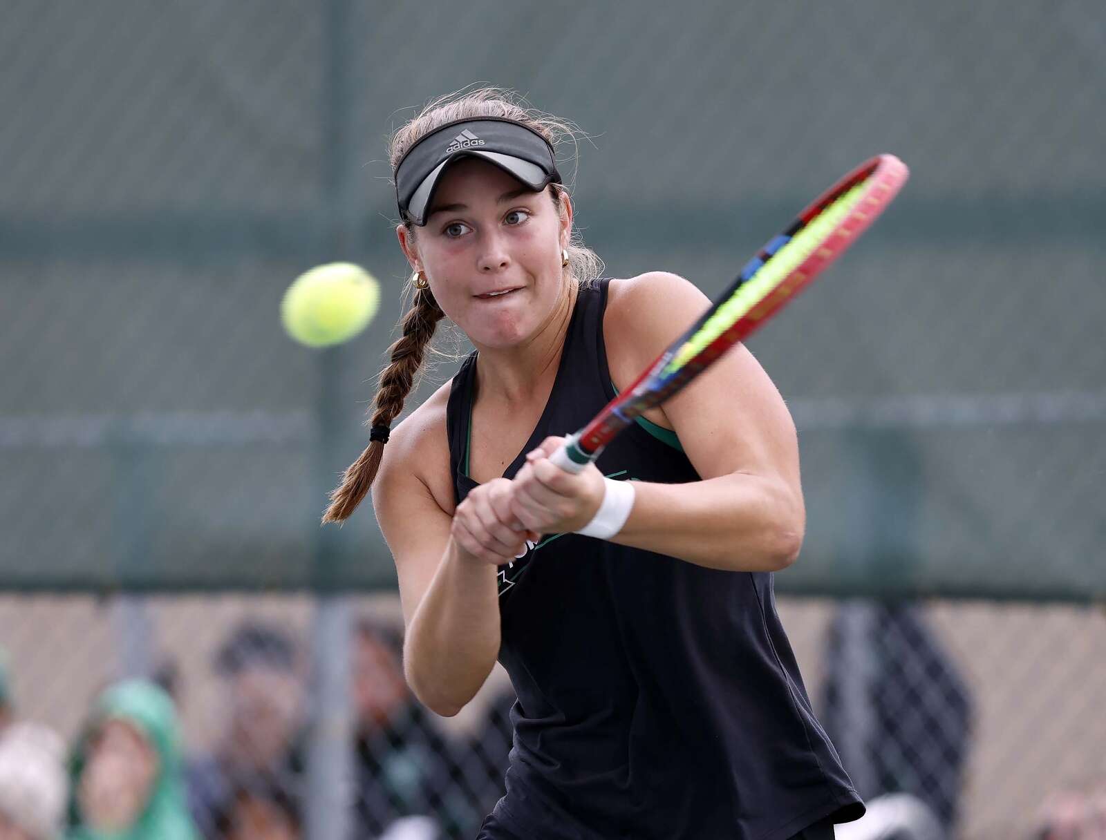 “I had to get locked in, for sure, to get back in the set, all while staying aggressive,” said Coan, who also played superb defense from the baseline by often catching up to Klooster’s hard, deep, well-placed groundstrokes to the corners. “Helena’s shots stay low, so I had to slice, lob, do anything I could to stay in the points.”