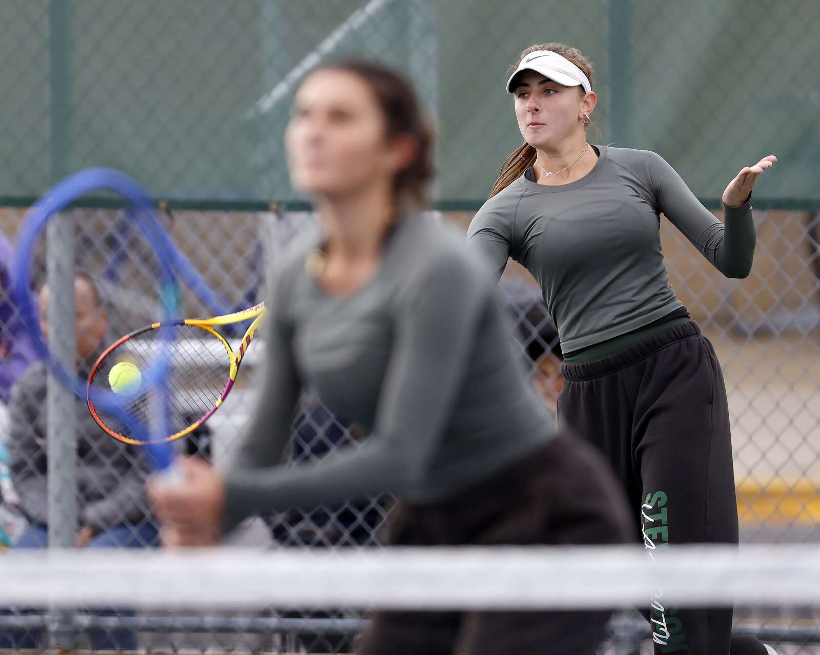 Stevenson seniors Emma Blass/Ana Sukovic, seeded 3-4 in doubles, finished third via their 7-5, 6-3 defeat of New Trier’s Ava Katz/Lily Hermann.