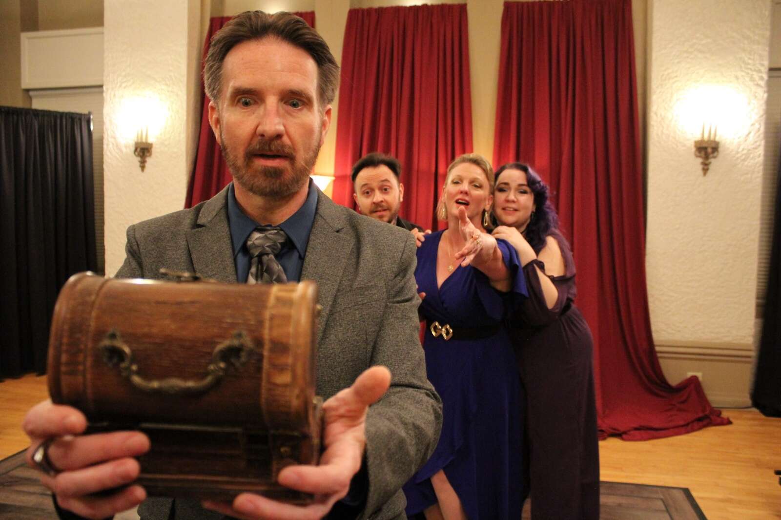The well-paced production — Janus’ final show at the Elgin Art Showcase — incorporates some broad physical comedy and audience interaction. More significant is Hargadon’s attention to detail: the subtle touches that reveal Antonio and Bassanio’s affection; Portia’s offhanded stereotyping of her suitors according to their origin; the slights and microaggressions directed toward Dougherty’s newly converted Jessica, whose fleeting expressions register the pain her new Christian friends (unintentionally?) inflict.