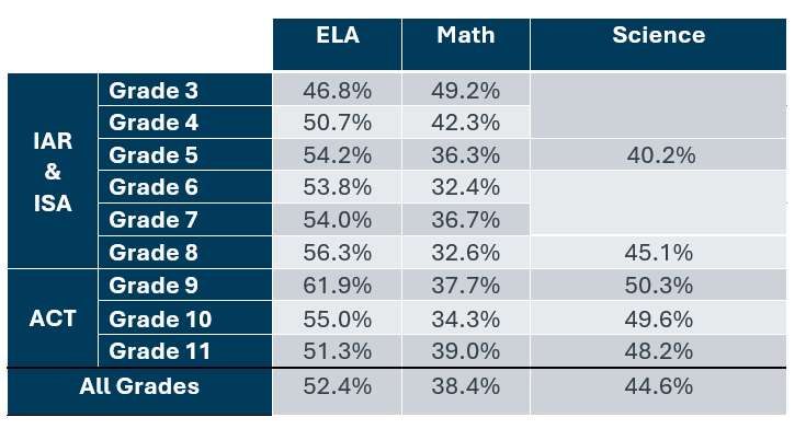 New in this year’s report card is student growth results for ninth, 10th and 11th grades — 2025 will serve as a baseline year for measuring future growth in high school. That’s in addition to the typical measures of ninth grade on track and ACT scores that help assess college readiness.